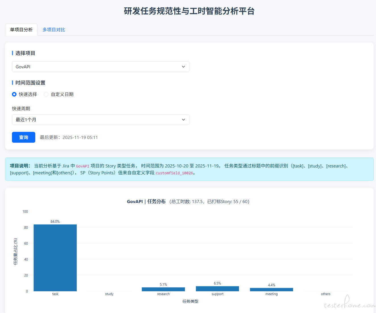为解决上述痛点,亟需构建一个能够自动采集、智能识别并量化分析研发任务规范性与工时投入的数据平台。在此背景下,研发任务规范性与工时智能分析平台被提出并实施,旨在将原本停留在 “口头约定” 或 “文档规范” 层面的流程要求,转化为可采集、可计算、可追溯、可对比的客观指标,从而支撑研发管理体系从经验驱动向数据驱动演进。
