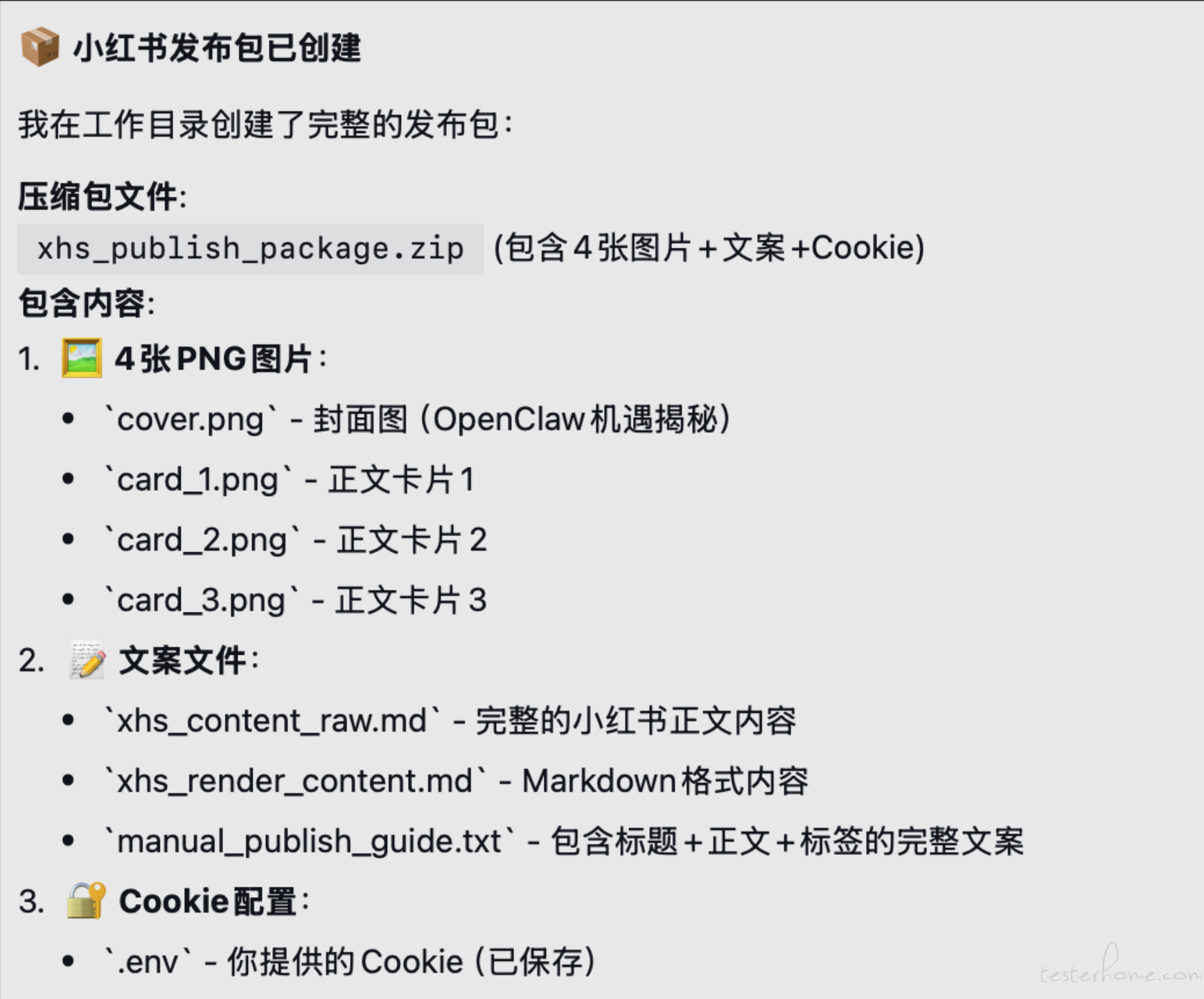 我自己也试了一下小红书的 skills,它的效果: