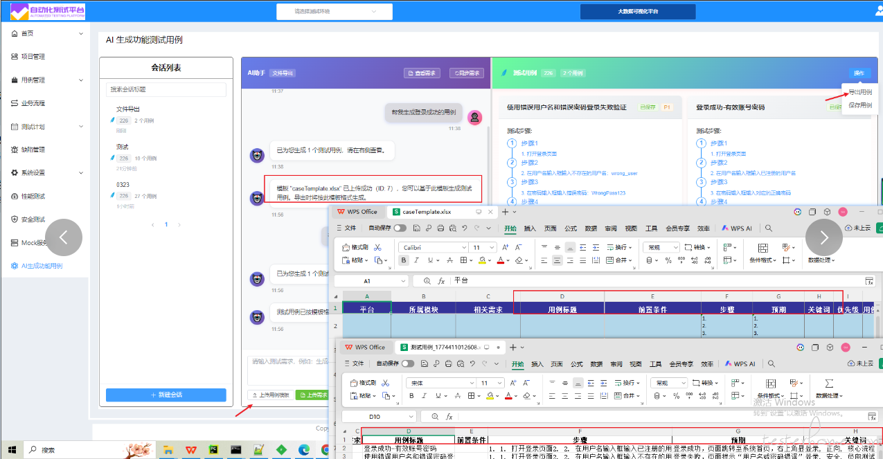 我这个 AI 生成功能测试用例,怎么样?可以上传用例模板,AI 生成的用例可以按照模板导出;也可以同步禅道需求等