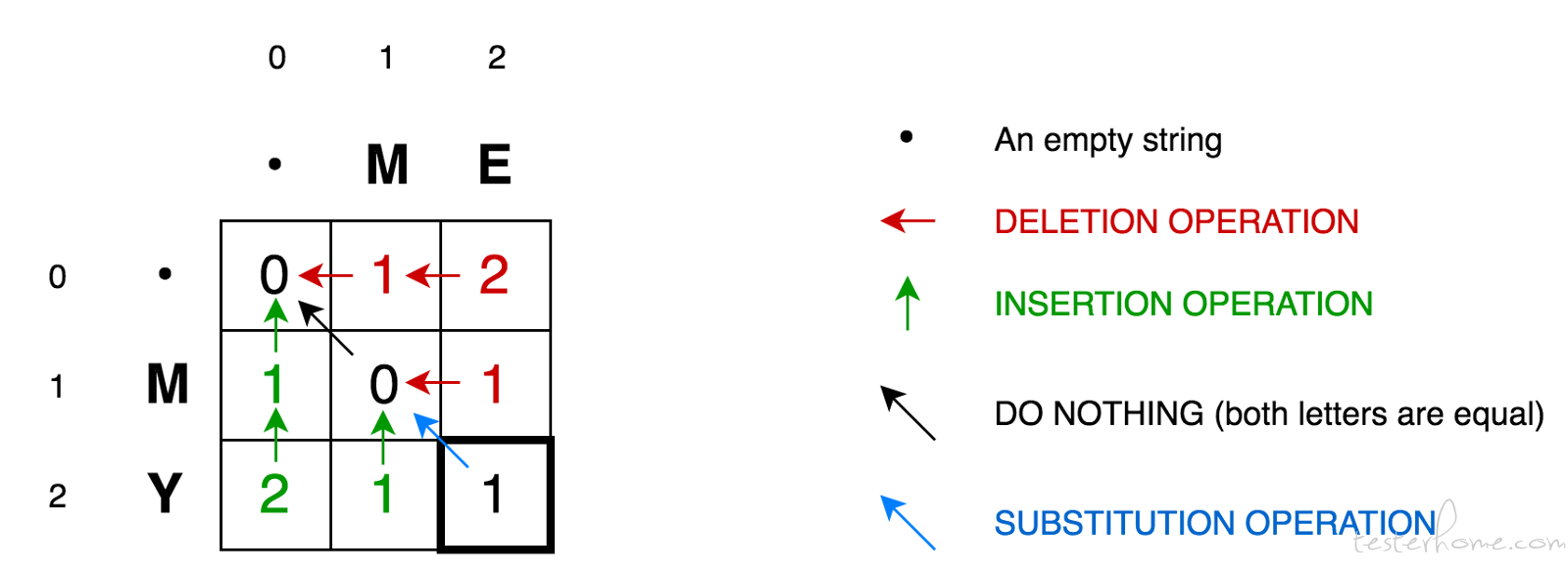 下图展示了 LCS 的计算矩阵以及如何获得 LCS。
