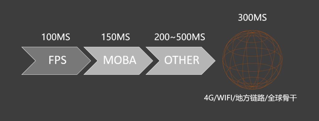 游戏设计初期必然要对当前全球网络环境有一个初步了解,这点之前也有提到,基本上当前物理链路的双向延迟为 300ms 内,但是考虑到无线信号不稳定、传统 3G 网络性能等原因,极端情况可能达 500-1000ms 甚至更高的情况,游戏必须为此进行一定取舍,早期帧同步游戏会因为网络最差的玩家造成整个战局的卡顿,而随着技术的发展,乐观锁已经通过舍弃低网络质量玩家的部分数据包来保证全球的游戏体验。