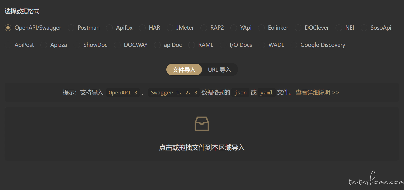 如果你的旧项目数据存储在其他软件上,那么迁移到 apifox 也很简单,apifox 支持多种格式的接口文档的导入