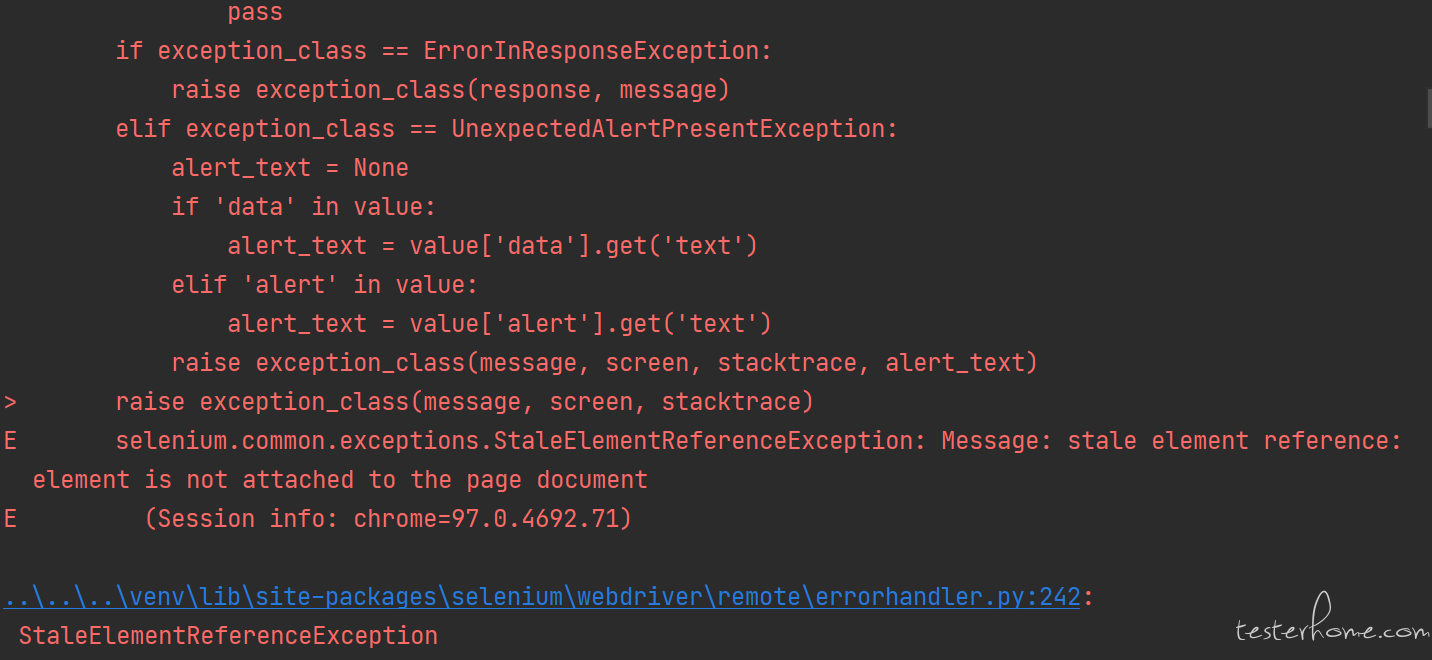 stale element reference 说明你在操作元素时 已经找到了这个元素 只是元素的状态变化了 无法再使用之前找到的元素引用来操作 需要重新再定位一次 这个异常在 UI 自动化中很常见