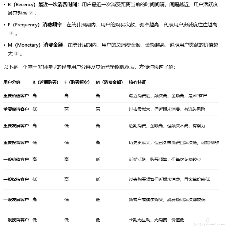 看到 RFM 的时候我首先一懵逼,什么是 RFM?我知道 RF 和 FM,RFM 还真不知道