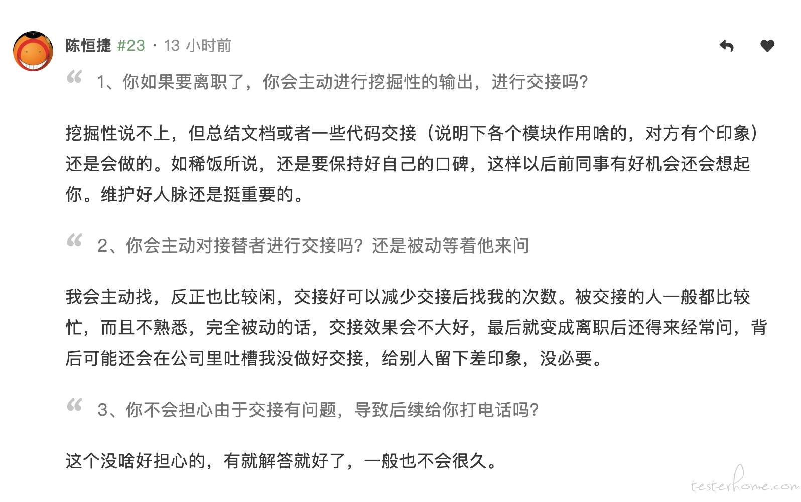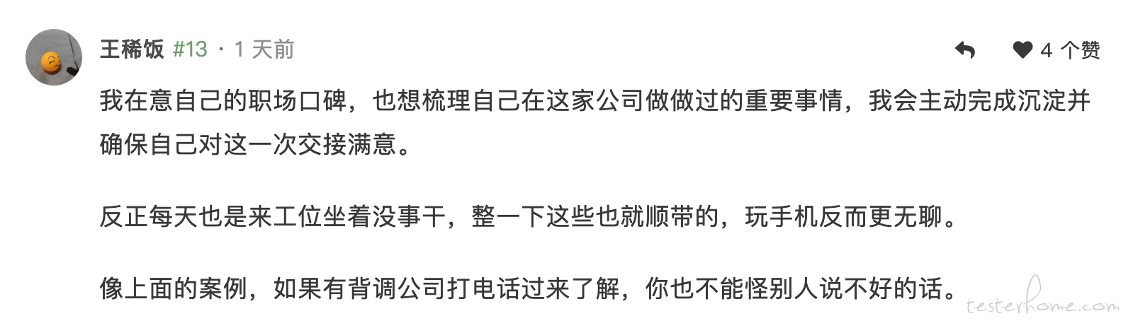 我在意自己的职场口碑,也想梳理自己在这家公司做做过的重要事情,我会主动完成沉淀并确保自己对这一次交接满意。