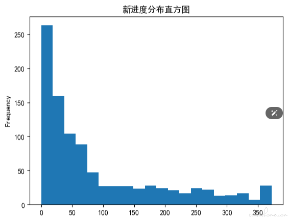 df_user['R值'].plot(kind='hist', bins=20, title = '新进度分布直方图') #R值直方图