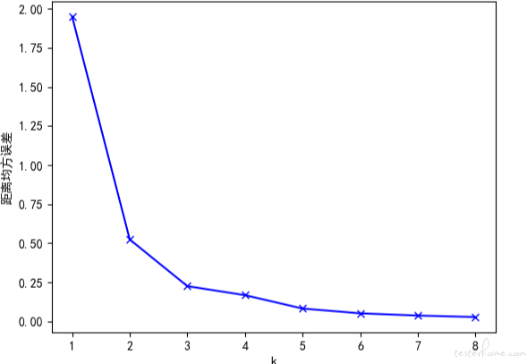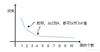 损失值曲线,就是以图像的方法绘出,取每一个 K 值时,各个数据点距离质心的平均距离。