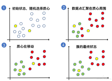 数据点离哪个质心近,就跟哪个质心属于一类。