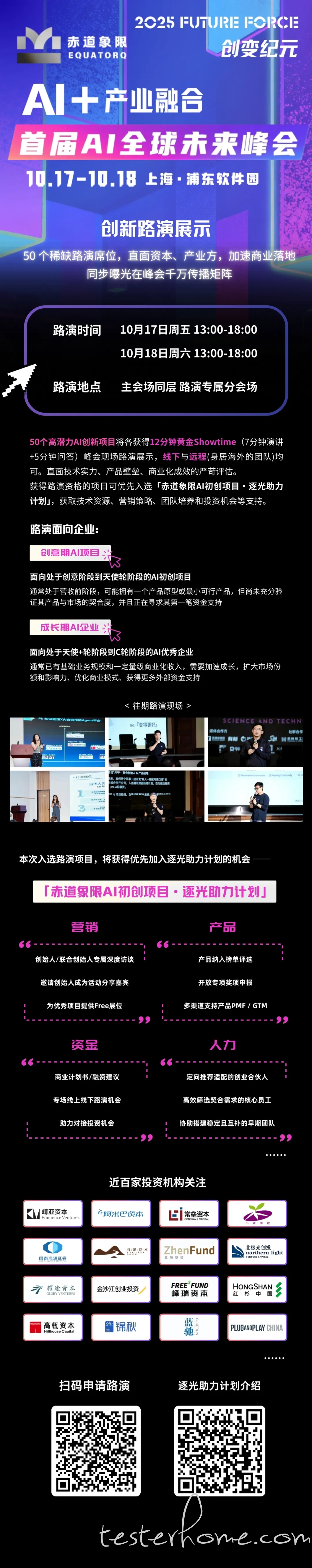 优秀路演项目将优先入选「赤道象限 AI 初创项目・逐光助力计划」,后续可获得技术资源、推广资源和投资机会等支持。