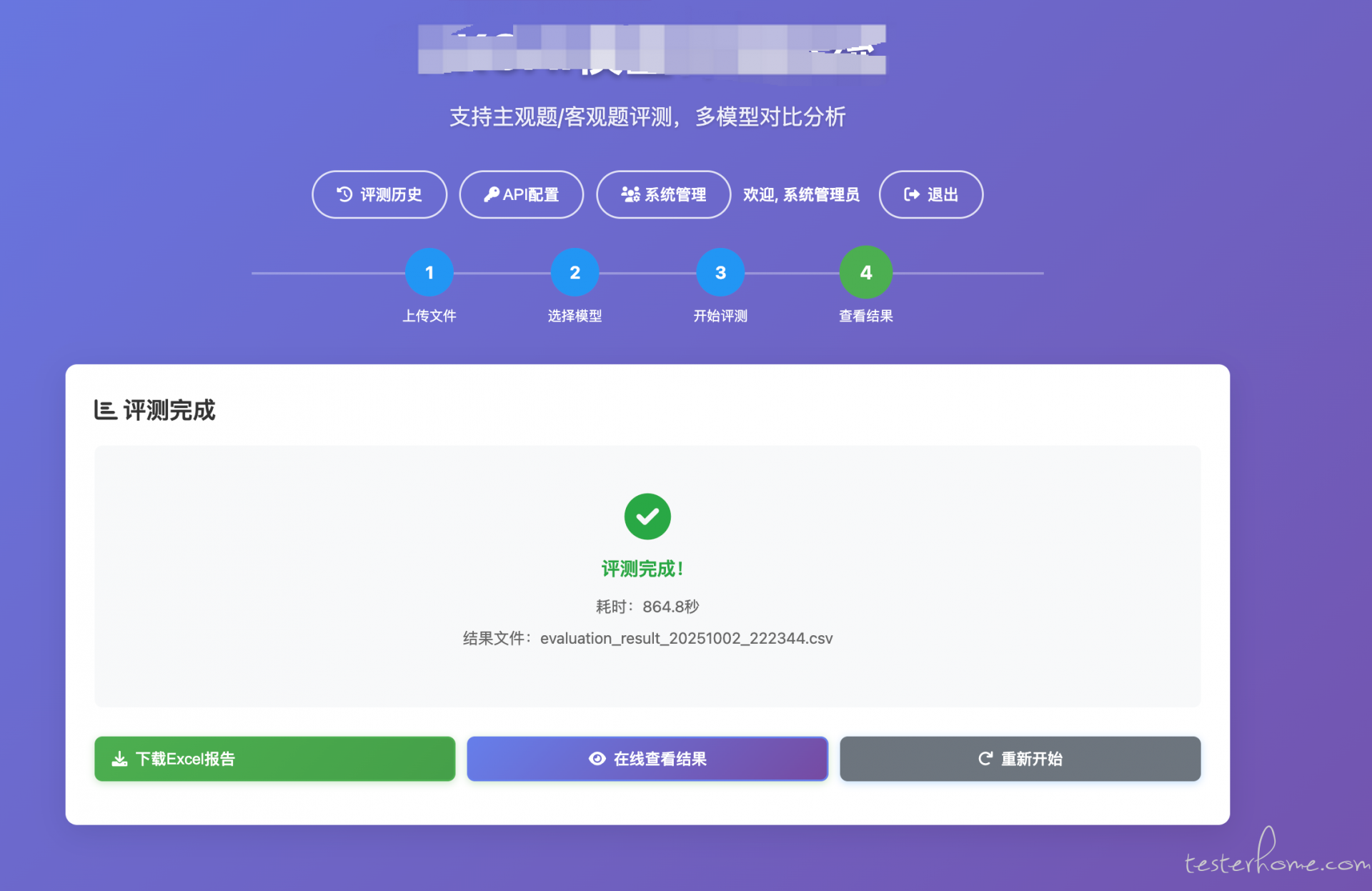 这就是本文要讲的系统的来历。它不是一个脚本集合,而是一套 “评测平台”:一处接入、多模型协同、统一评分口径、端到端追踪、结构化历史、可视化报告、权限与分享。如今它已经跑在我们的机器上,它每天在替我们做一件本应自动化的工作:让评测这件事,成为 “被系统化管理的工程实践”。