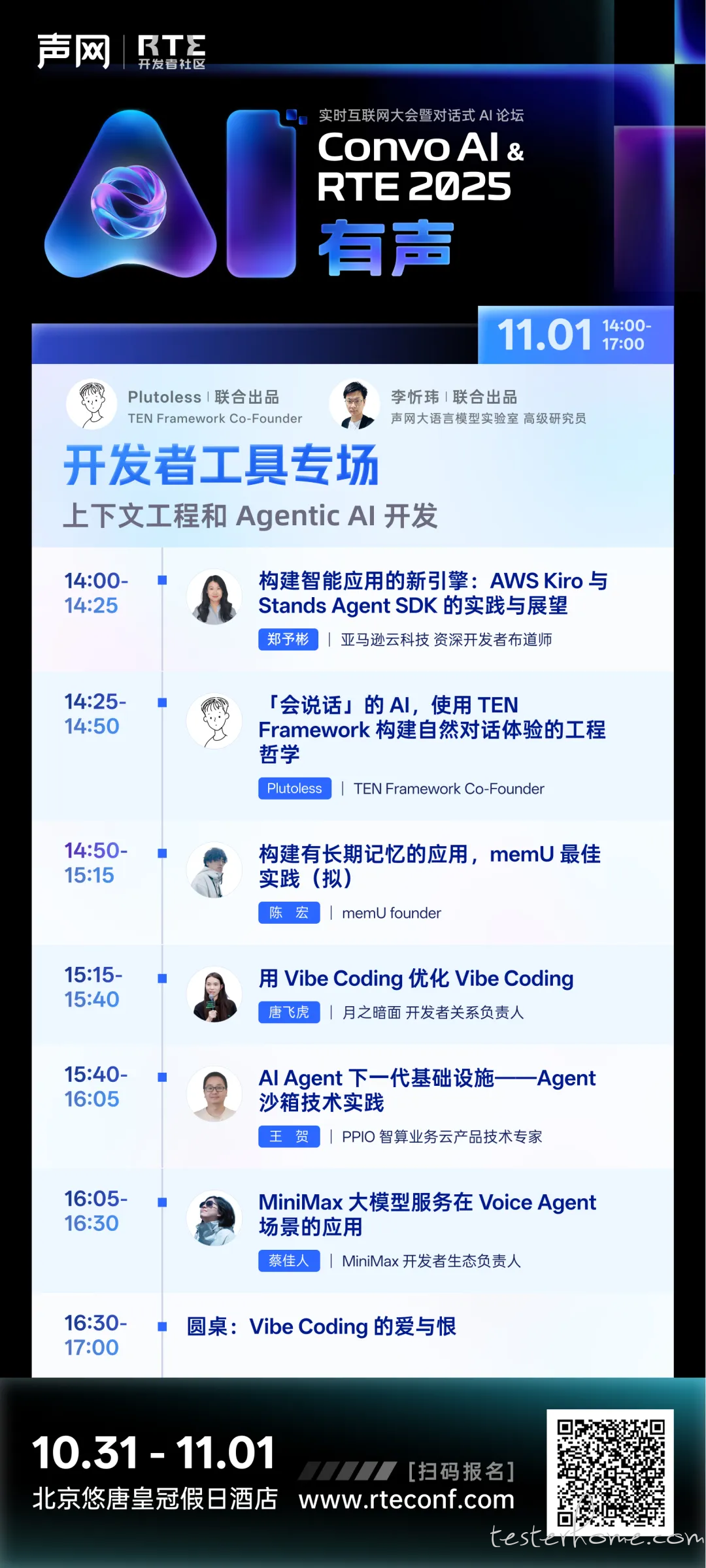 来 Convo AI & RTE2025「开发者工具专场」,加入我们的讨论,一同提问,一同寻找答案!