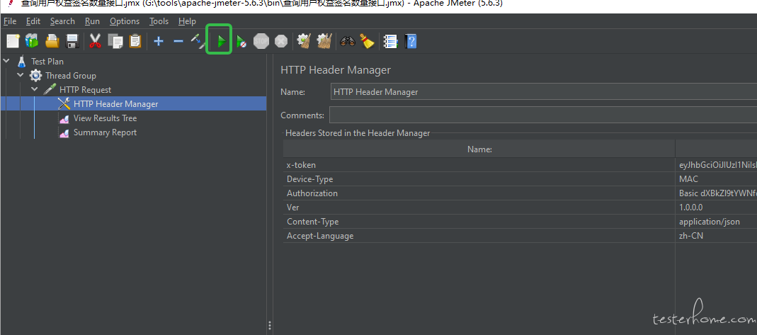 5、基本配置完了,我们来测试下,看看效果。点击上面的三角形按钮,就直接运行压测了