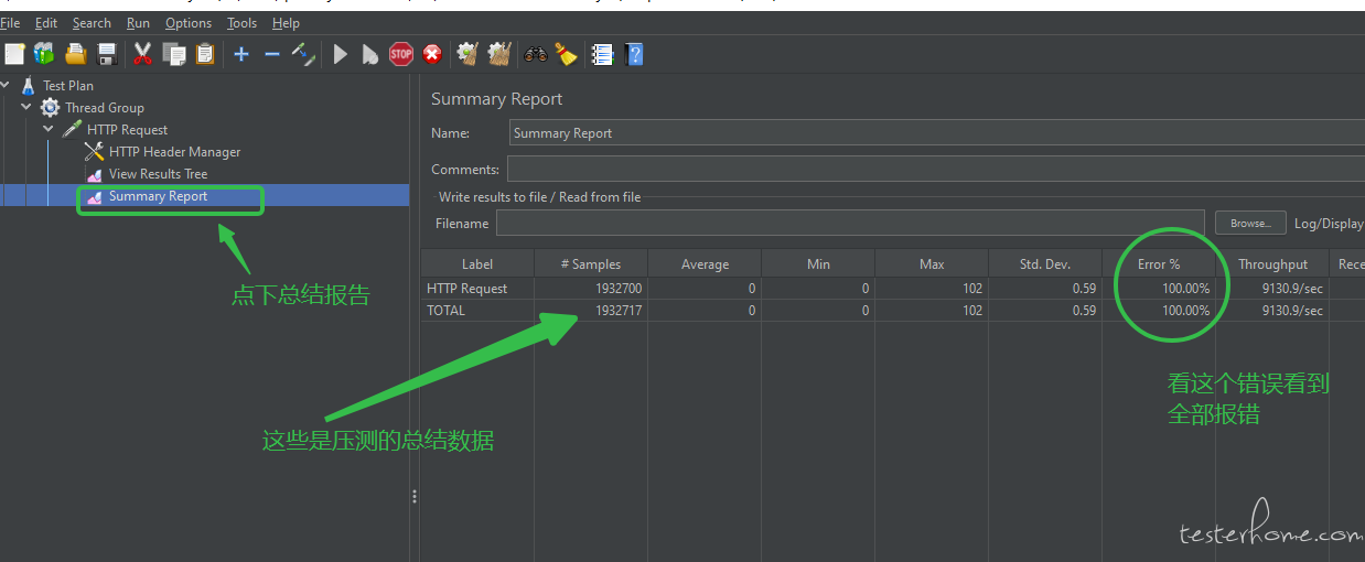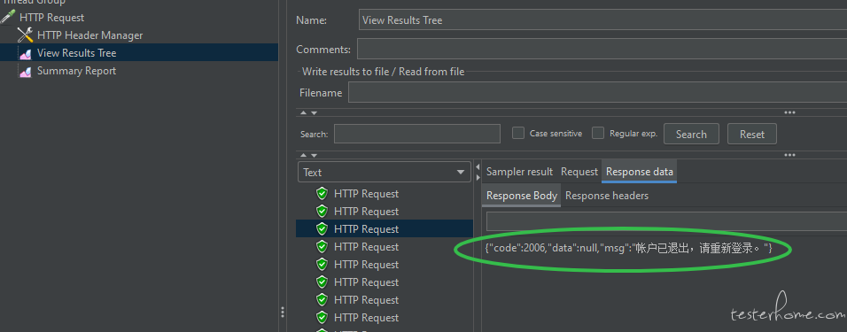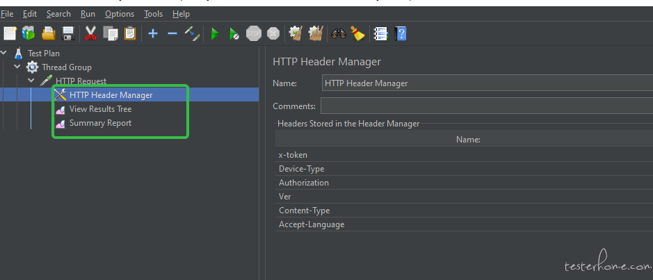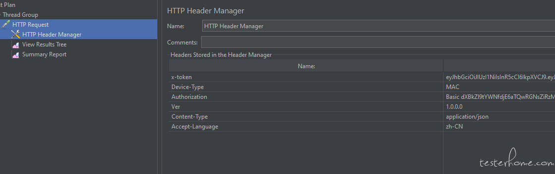 我的简单示例,只添加三个,header 头配置、接口请求结果、整体压测报告