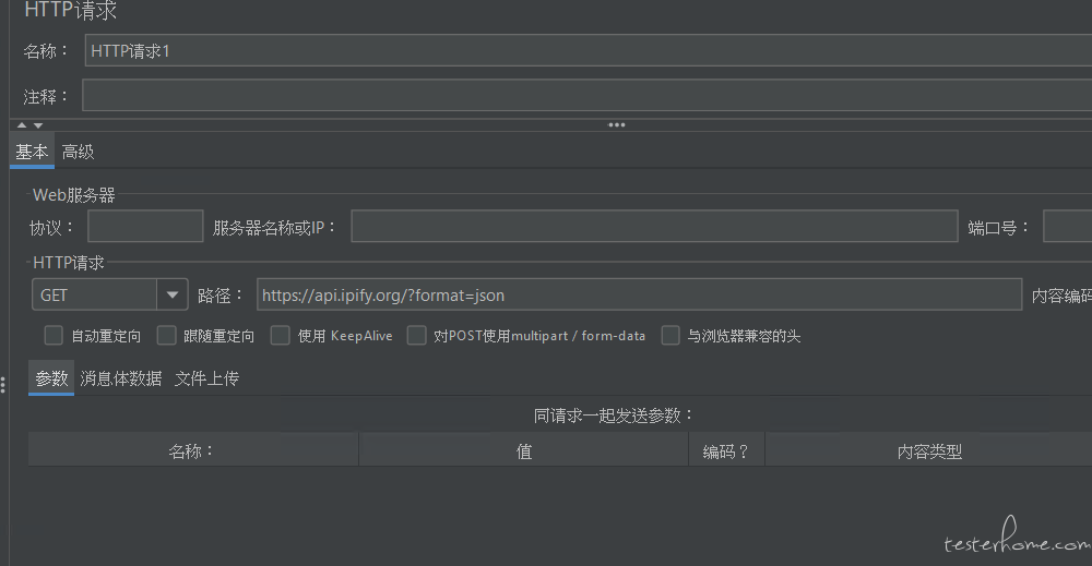 使用 jmeter 测试接口时需要使用代理进行请求https://api.ipify.org/?format=json, 正常会返回代理的 IP,在请求的高级设置中配置了代理服务器 IP、端口、用户名和密码,但是请求一直报错 org.apache.http.NoHttpResponseException: api.ipify.org:443 failed to respond