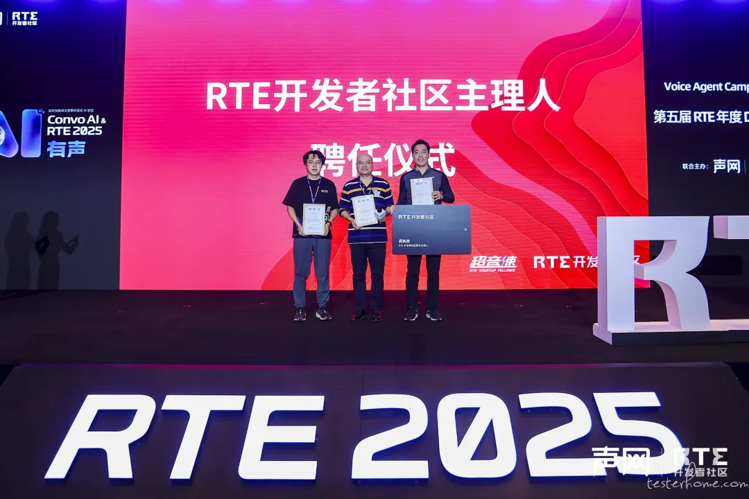2024 年 10 月至今这一年来,超过 2000 位开发者在对话式 AI 和 Voice Agent 领域里,多位 RTE 开发者社区联合主理人也一起深度参与了 RTE 开发者社区的共建和共同成长。在年度 Demo Day 现场,RTE 开发者社区还发起了非常有意义的环节——社区主理人聘任仪式。