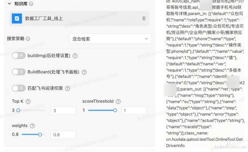 全量工具详情知识库:数据直接同步平台工具数据库,细分为 “线上”“线下” 两个子库——线上库对应生产环境工具,线下库对应测试环境工具,避免智能体误调用测试工具影响线上业务,保障执行安全性。