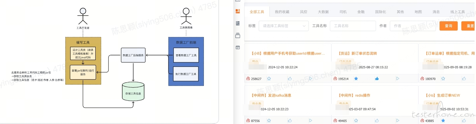 工具开发者只需写 Java 工具类(遵循统一规范),平台通过自研解析引擎自动提取功能描述、输入输出参数等元信息,前端再自动生成可视化界面。