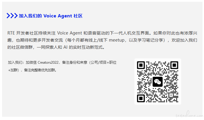 2)快速验证 Demo 的团队:无需投入 WebRTC 的复杂学习成本即可构建实时语音交互 MVP;在进入生产阶段时,也可无缝切换至 WebRTC,保持 STT → LLM → TTS 主体链路不变,仅替换传输层即可。
