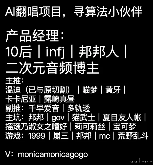 1、招聘:AI 翻唱项目,寻算法小伙伴