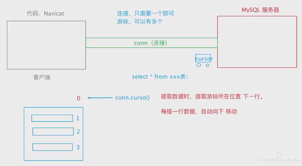 • fetchall(): 从结果集中,提取所有(注意:依旧和游标位置相关,只提取游标位置以下的数据)