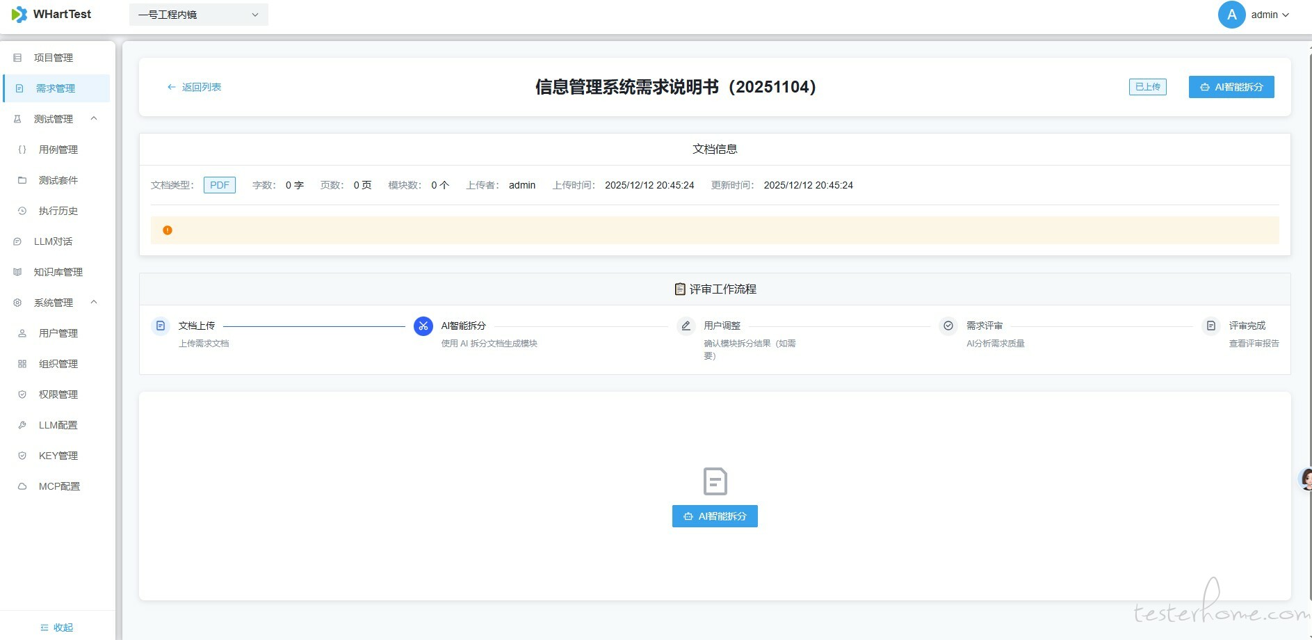 3、上传需求文档并解析模块