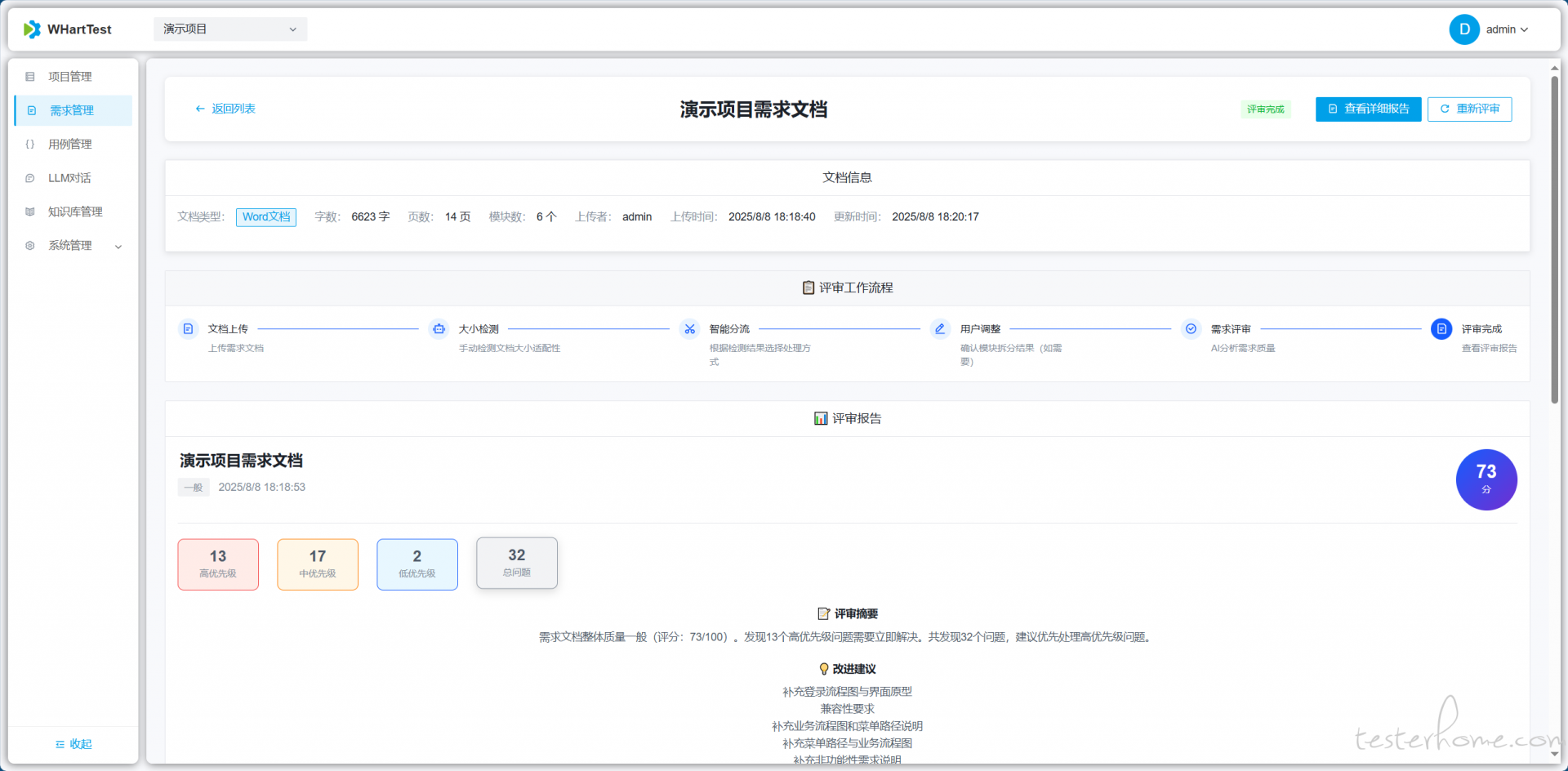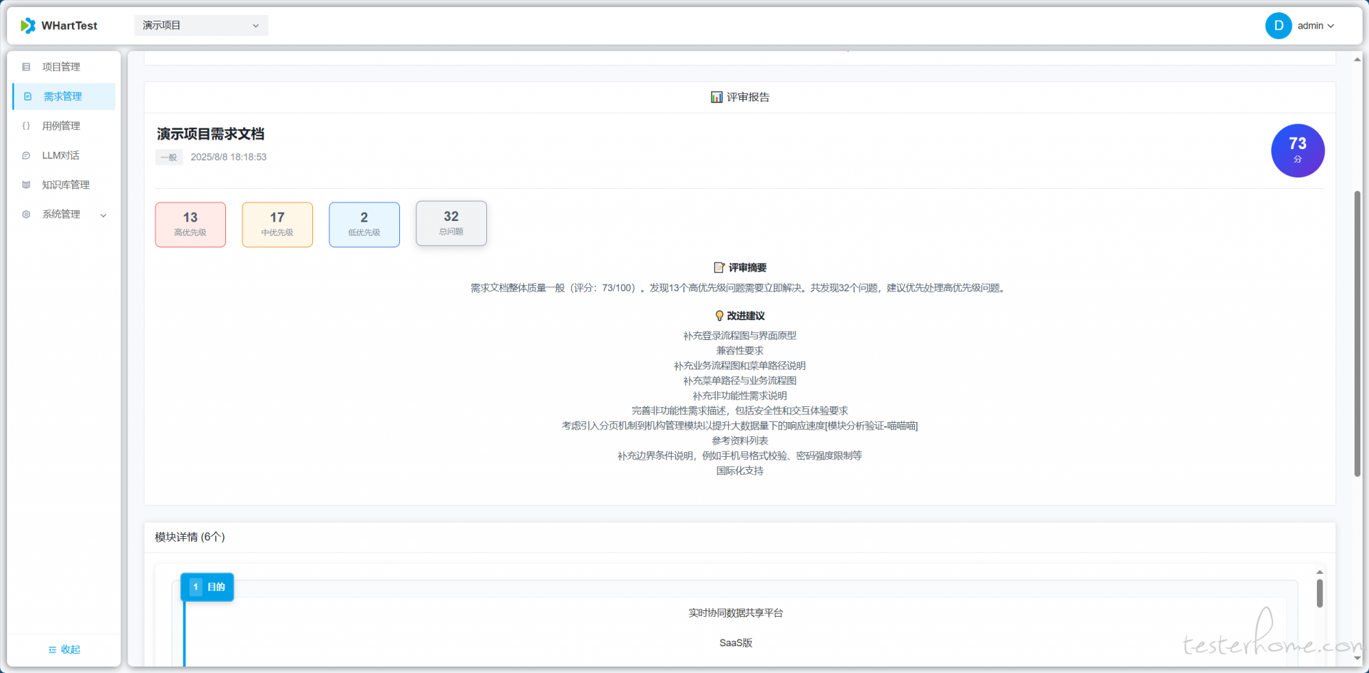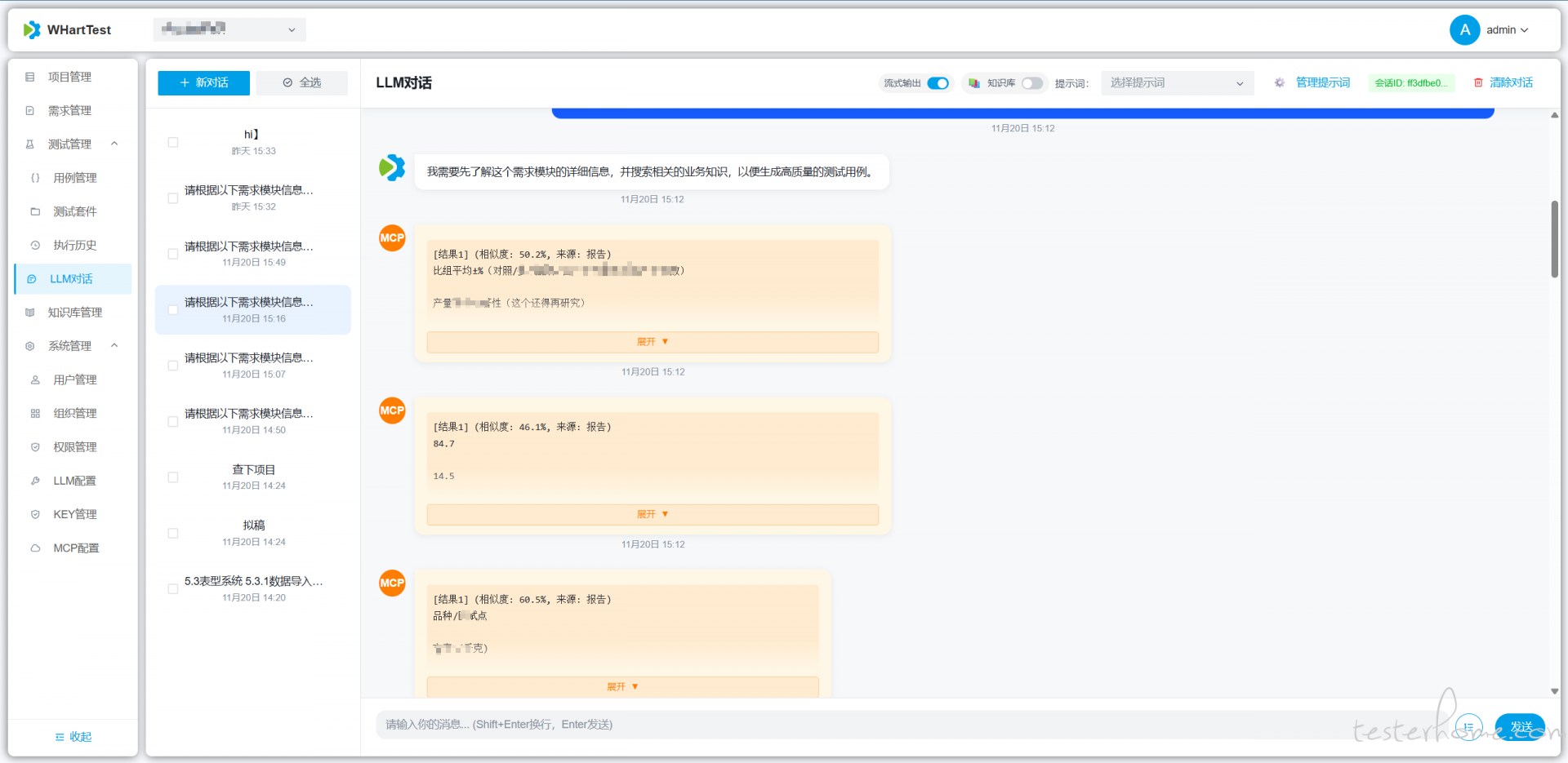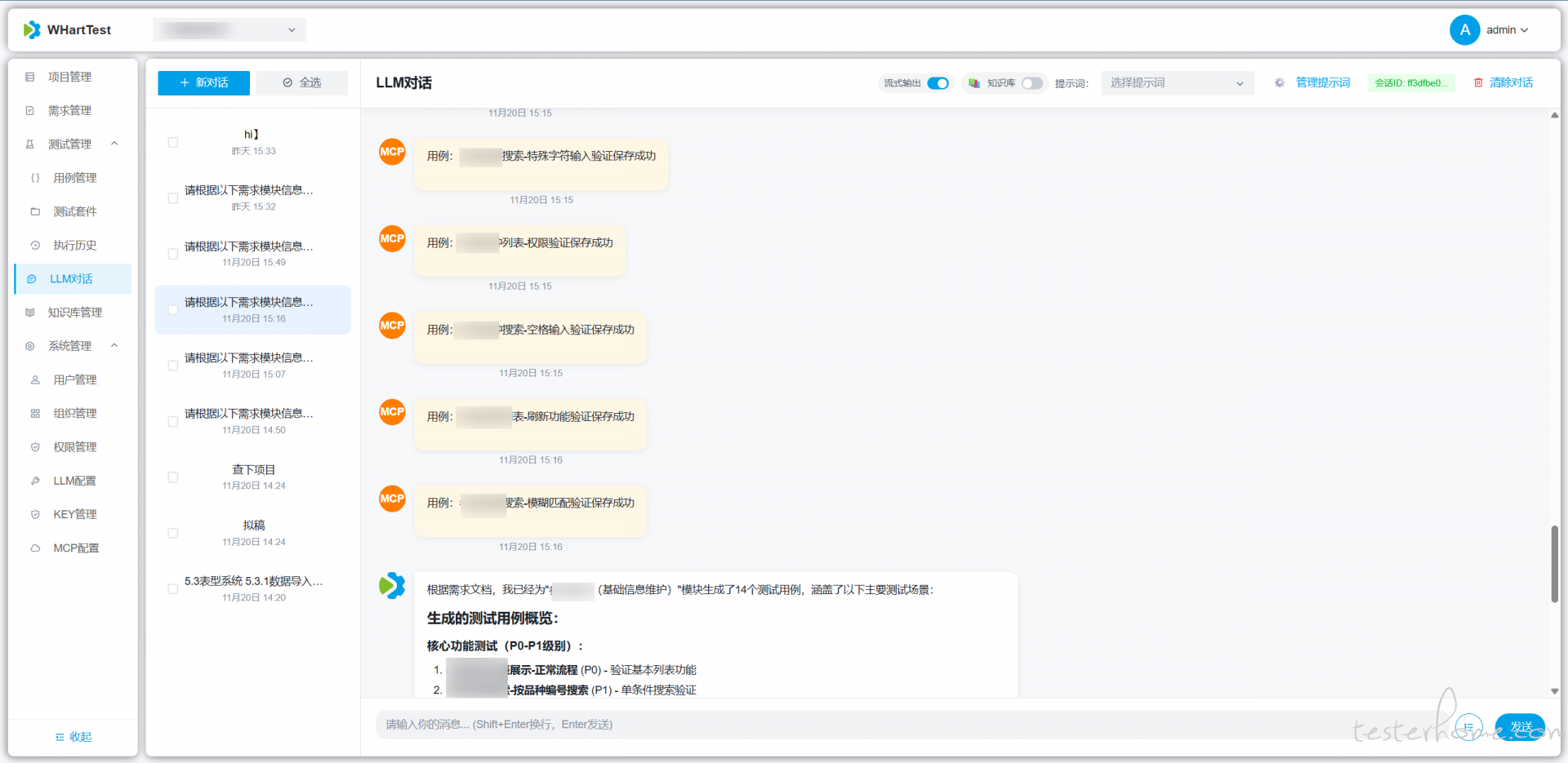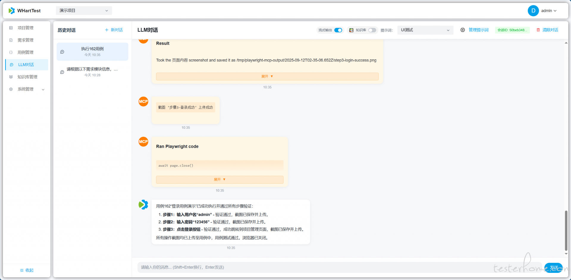 WHartTest 是基于 Django REST Framework 与现代大模型技术打造的 AI 驱动测试自动化平台。平台聚合自然语言理解、知识库检索与嵌入搜索能力,结合 LangGraphMCP(Model Context Protocol) 工具调用,实现从需求到可执行测试用例的自动化生成与管理,帮助测试团队提升效率与覆盖率。