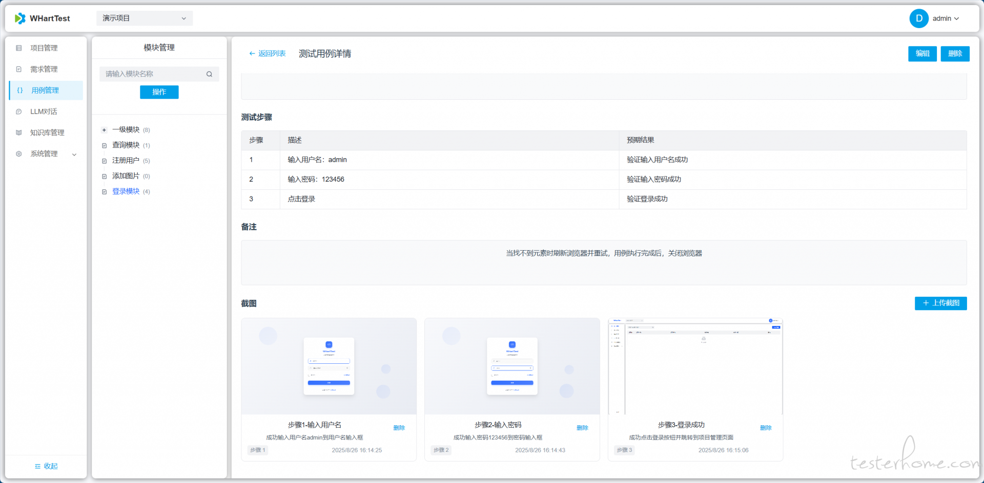 执行结束后,可到用例管理对应模块查看
