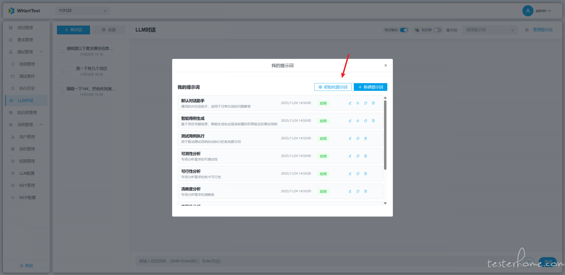 2、配置对应提示词,即可对话窗口执行对应的用例