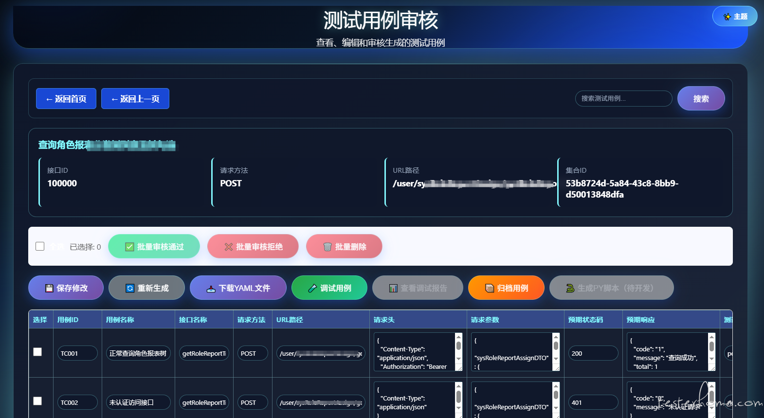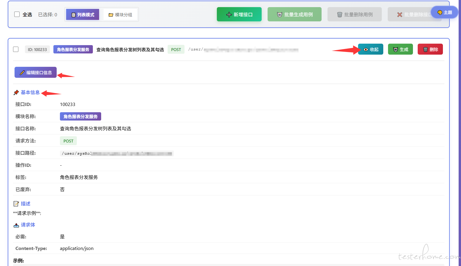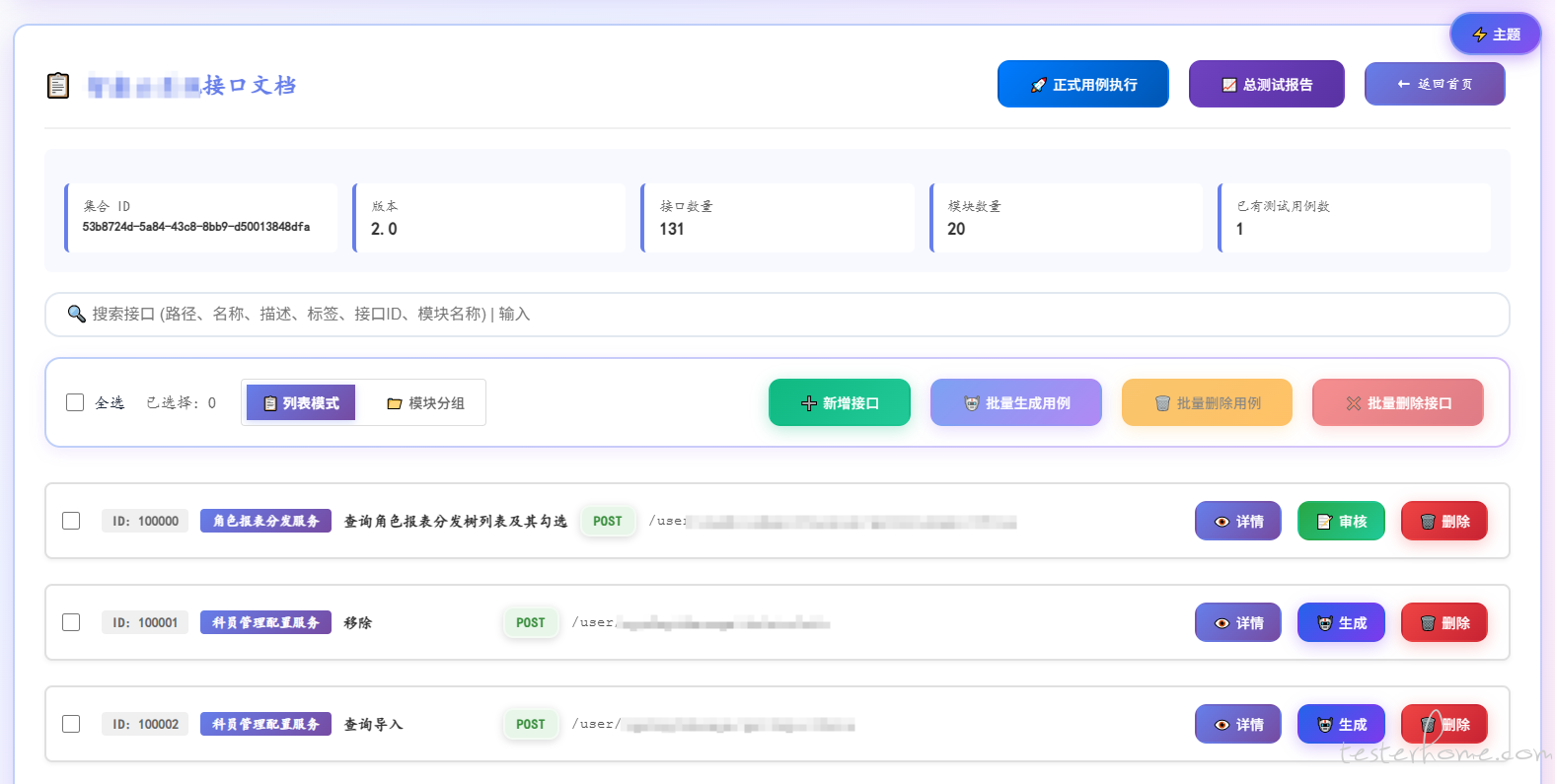 - 接口管理 (增删改查/批量操作/手动新增接口)