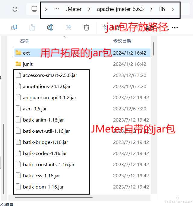 lib 目录:存放 JMeter 依赖的 jar 包和用户拓展所依赖的 jar 包