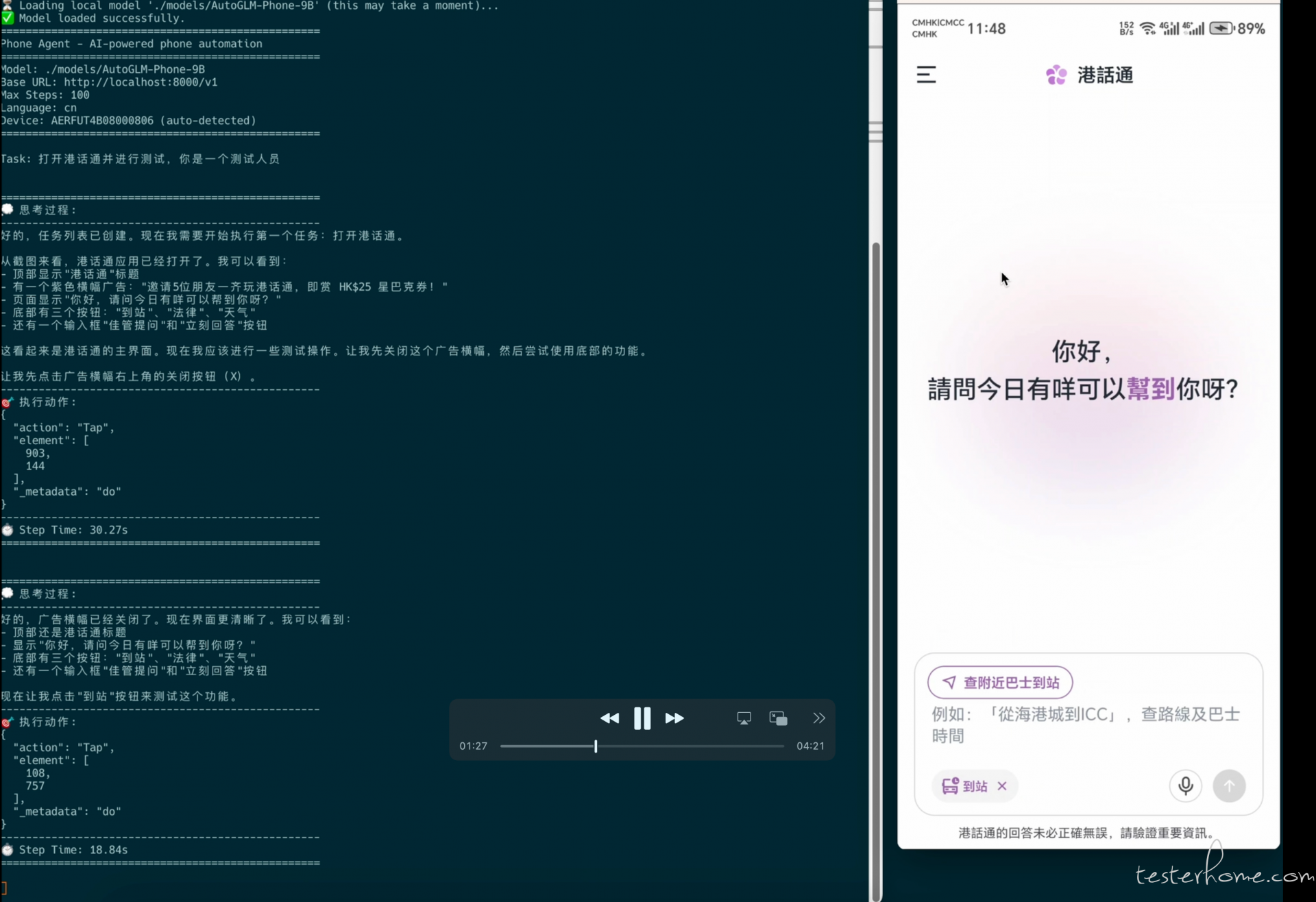 我们利用 Open-AutoGLM 框架,指定其扮演 “大模型测试工程师” 的角色,对 “港话通” AI 助手应用进行全面功能测试。