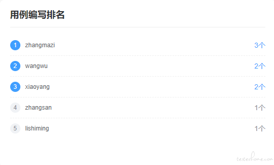此外,用例编写排名 (Top 5) 激励团队成员积极参与测试建设: