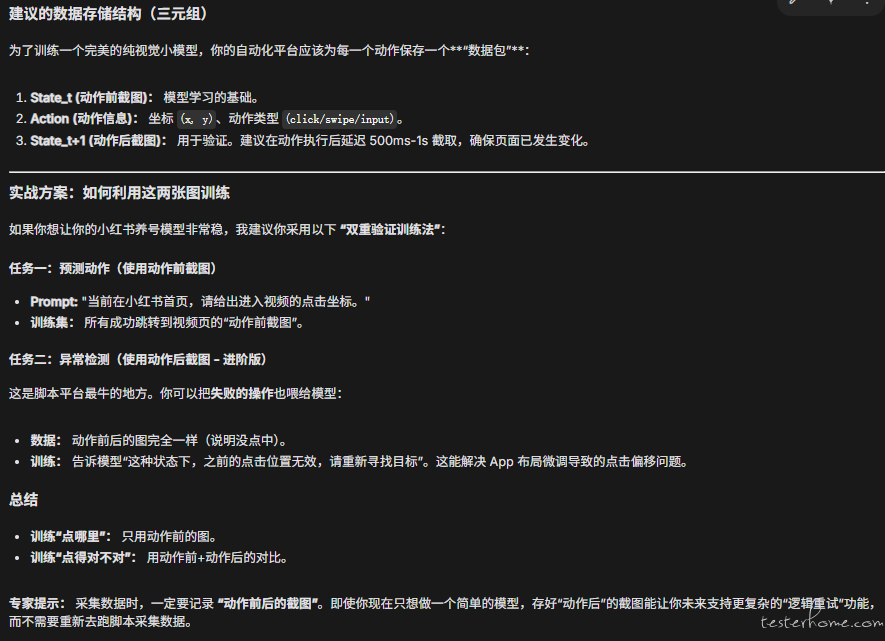 【与 AI 的探讨】基于已有的自动化脚本平台,日常积累的大量数据,训练【纯视觉自动化决策小模型】