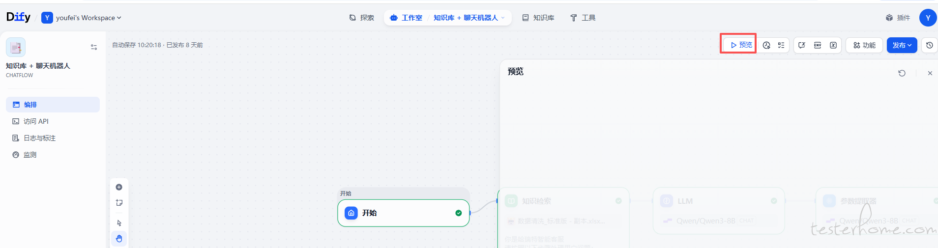 2 可以在工作室编排页面点击预览后在右侧输入答案,运行完成后也可以查看日志