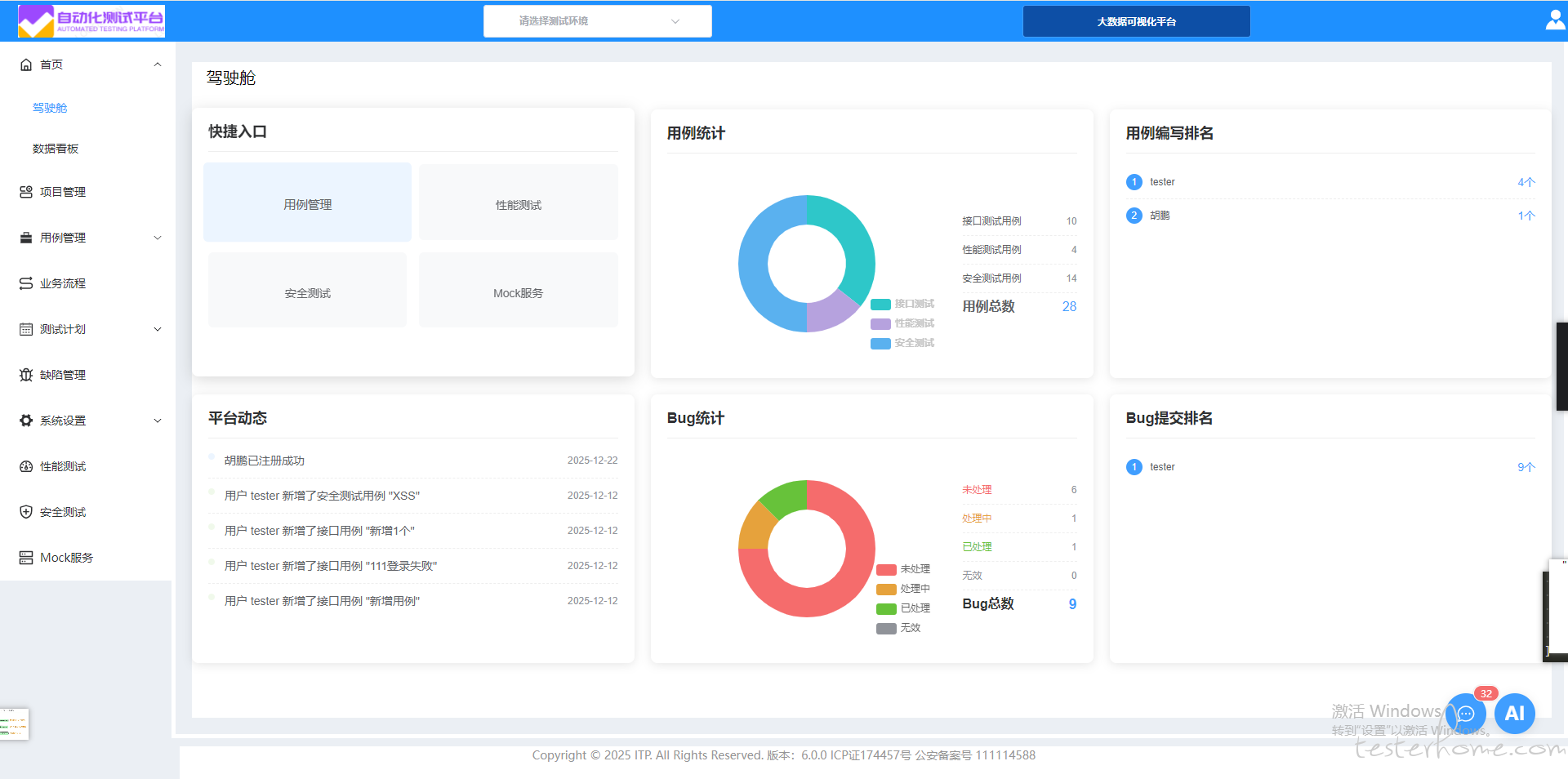 驾驶舱功能:新增驾驶舱模块,优化安全测试功能