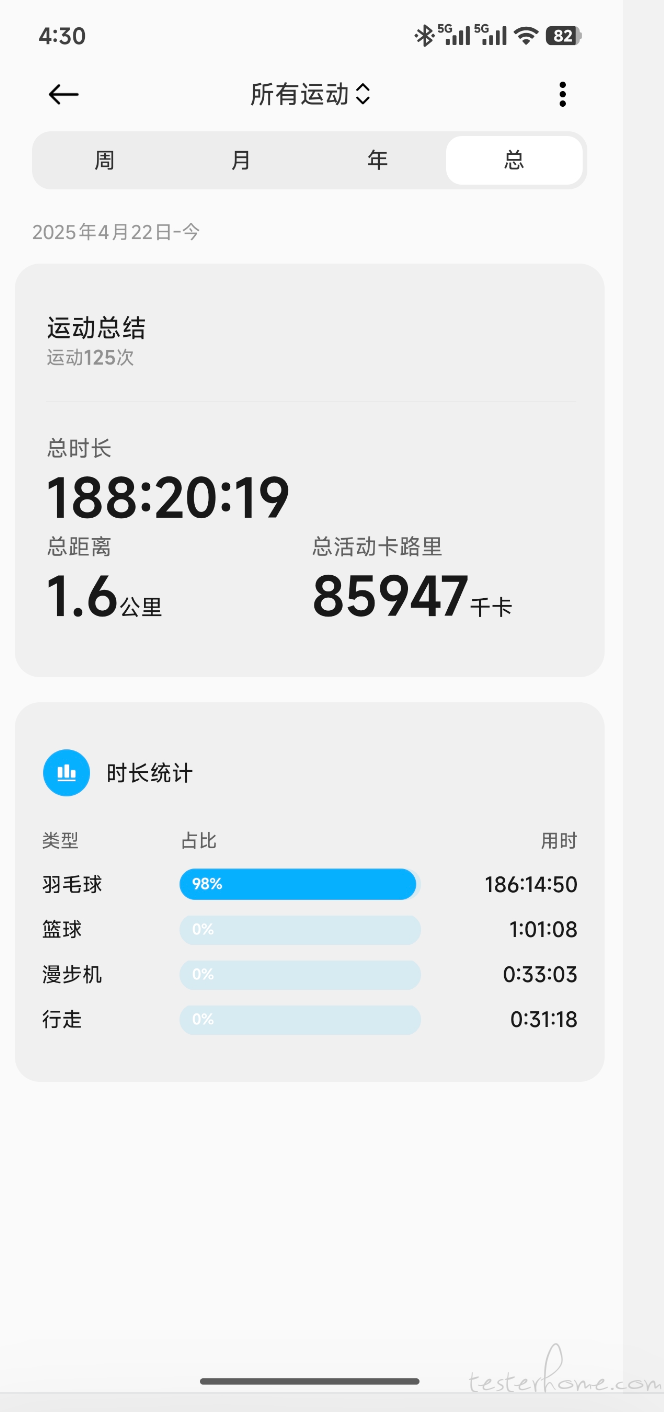 2025 年打羽毛球打了差不多 200 个小时【有时没带手表,图上统计的不完整】
