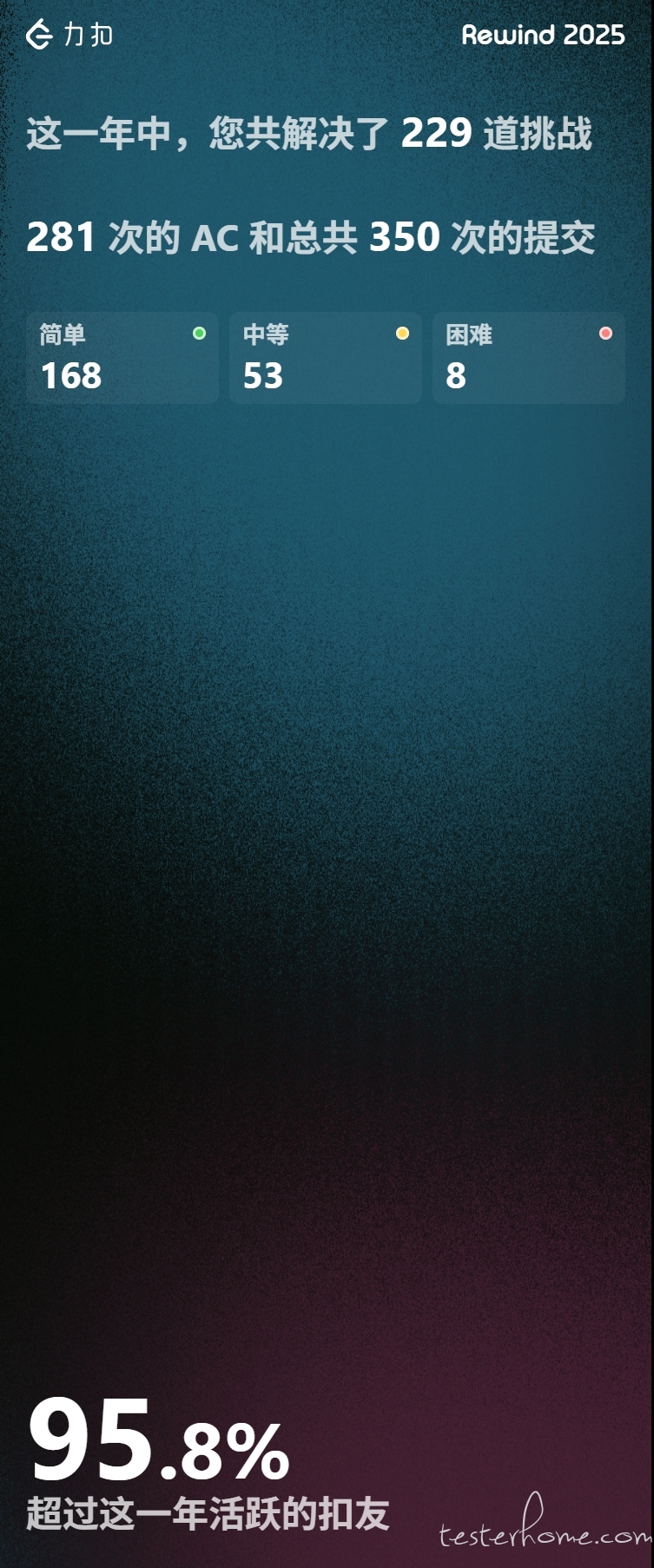 - 【个人学习】空闲时候则在 Leetcode 上刷刷题,全年共解决简单问题 168 题,中等 53 题,困难 8 题,在团队内部分享如何解题共 10 次。