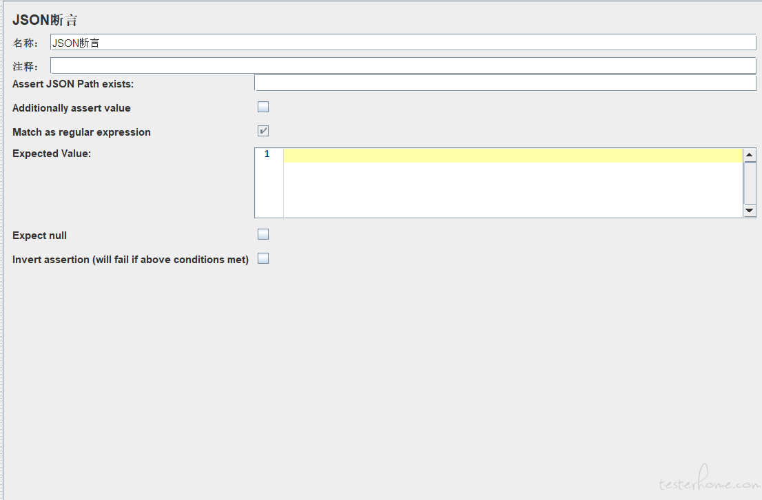 • Assert JSON path exists:用于断言的 JSON 元素的路径(实际结果)