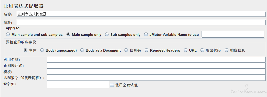 测试计划——>线程组——>HTTP 请求——>(右键添加)后置处理器——>正则表达式处理器