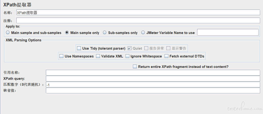 测试计划——>线程组——>HTTP 请求——>(右键添加)后置处理器——>XPath 处理器