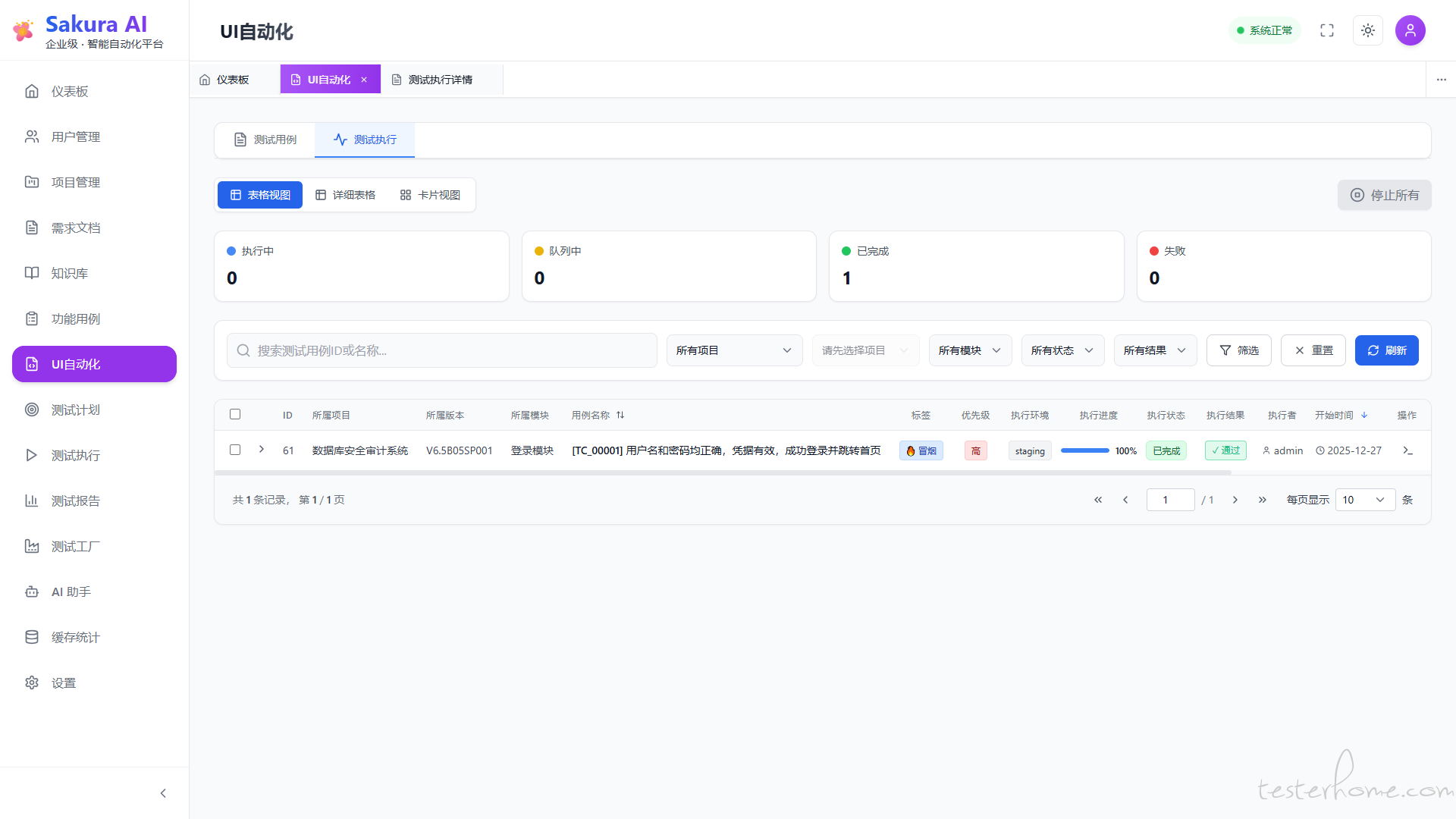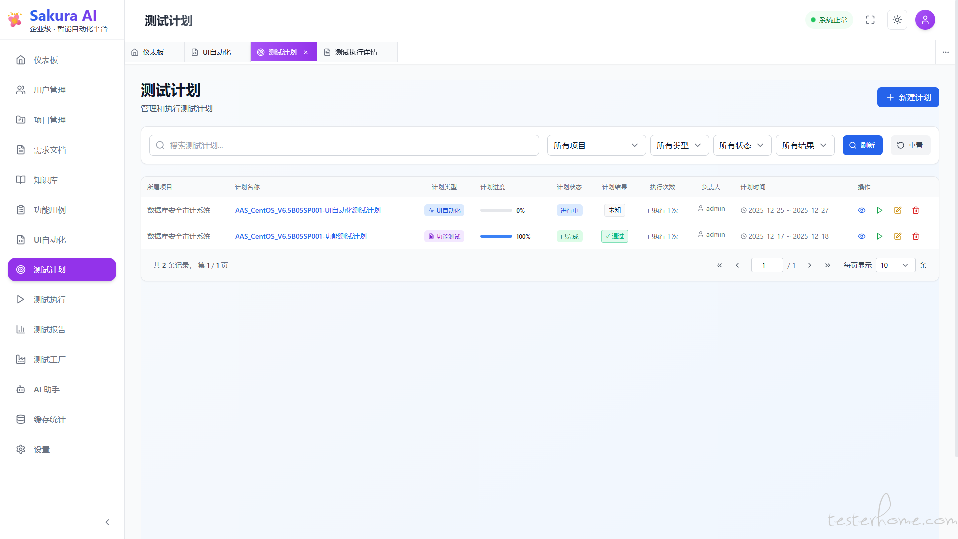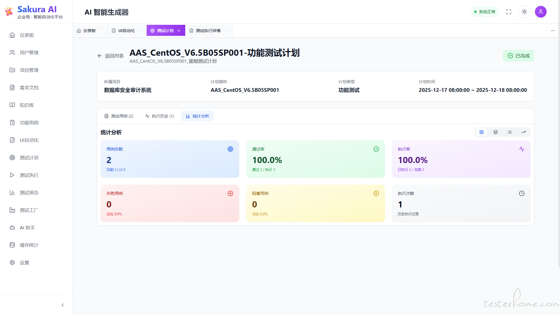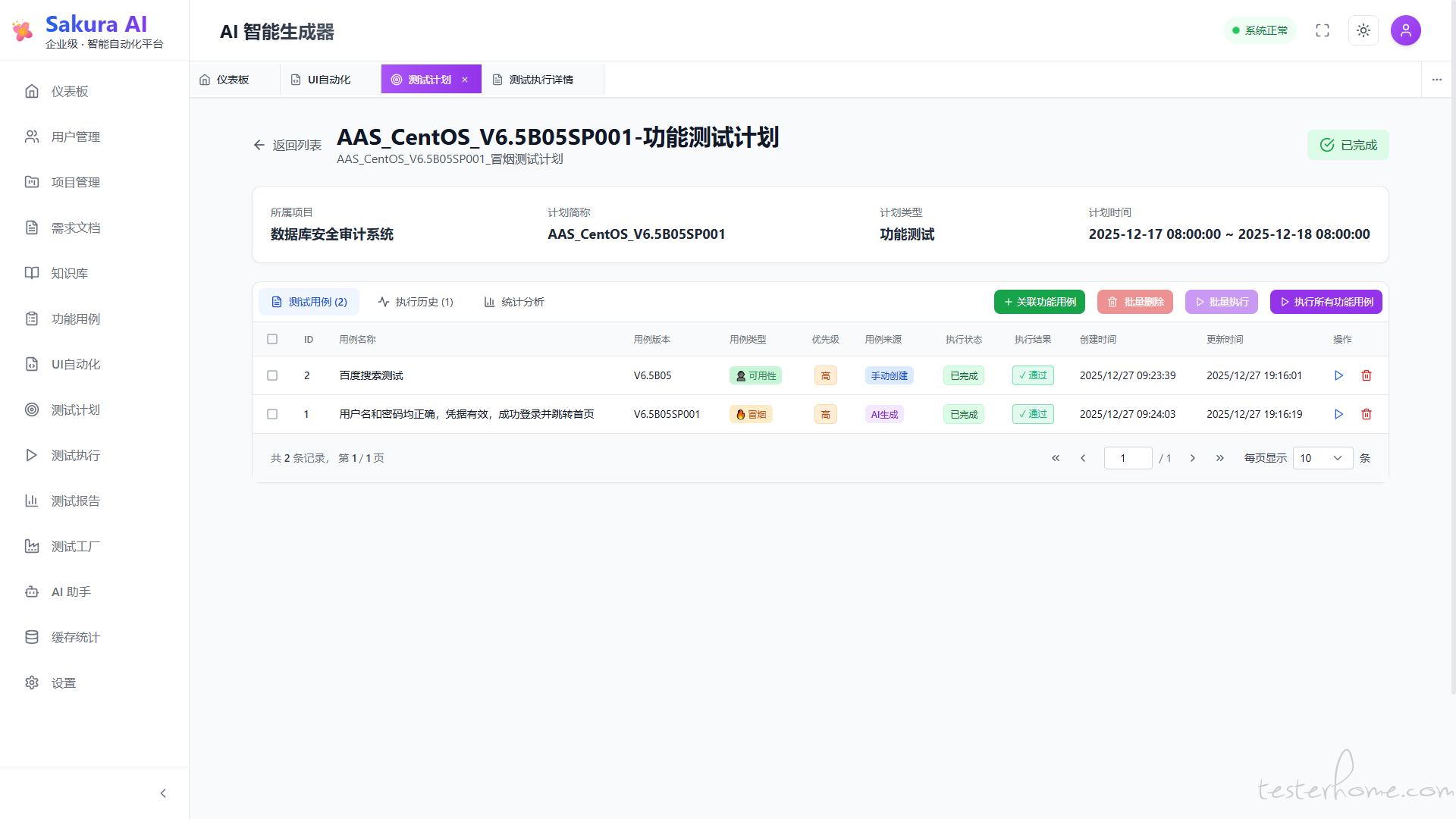 • 测试完成时自动同步结果到 test_plan_executions 表