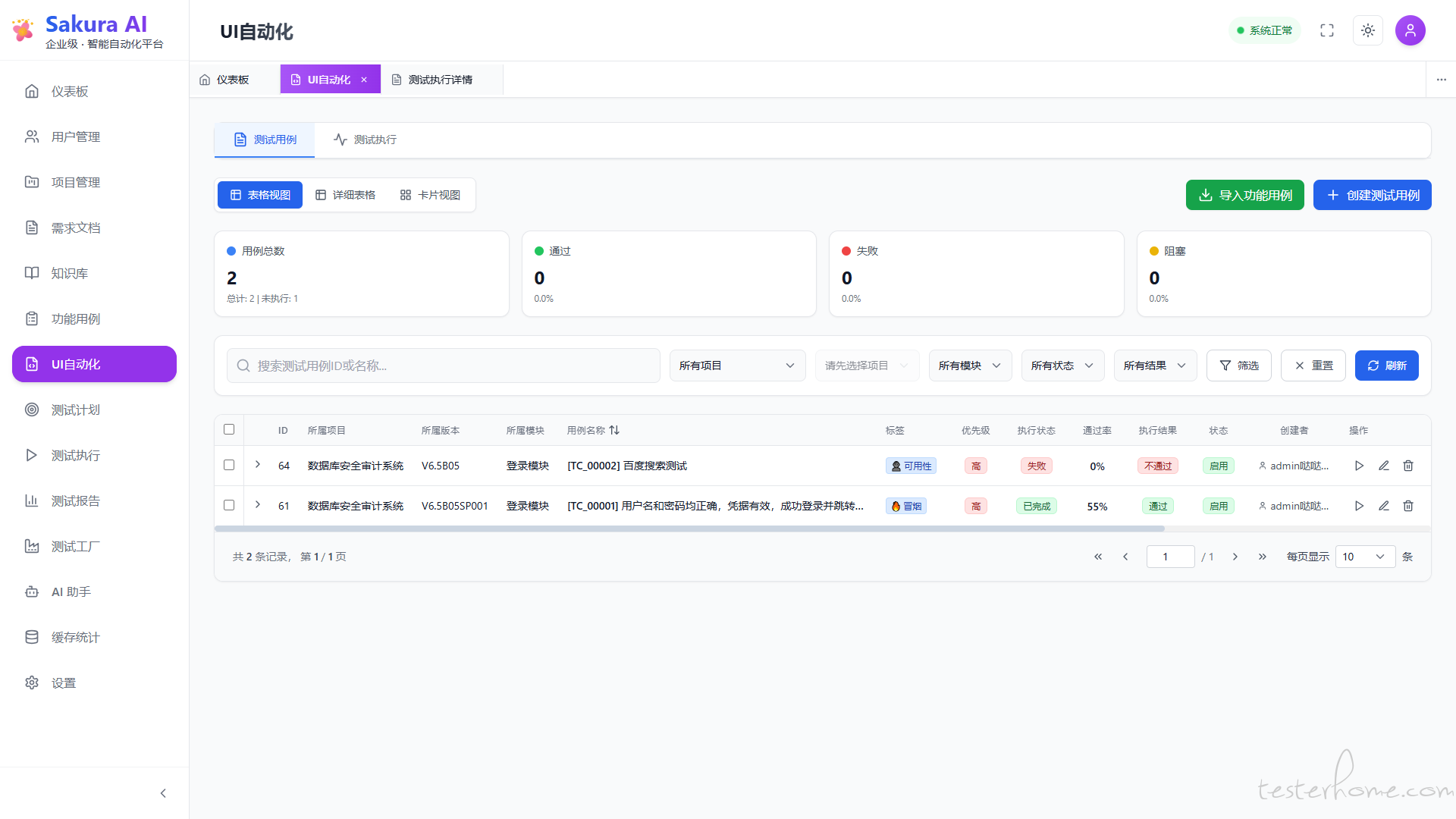 • UI 自动化执行历史和统计数据正确展示