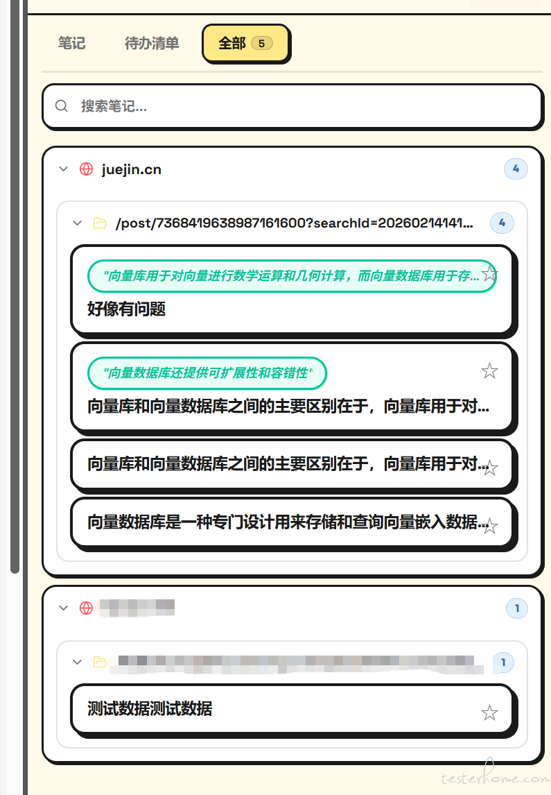 用法很简单。在测试某个页面,发现了那种说不准的场景,按一下快捷键,侧边栏出来,写两句话,关掉。记录就绑在这个页面的 URL 上了,甚至我其实也不关掉,它可以随着我浏览各种网页,帮我保留记录