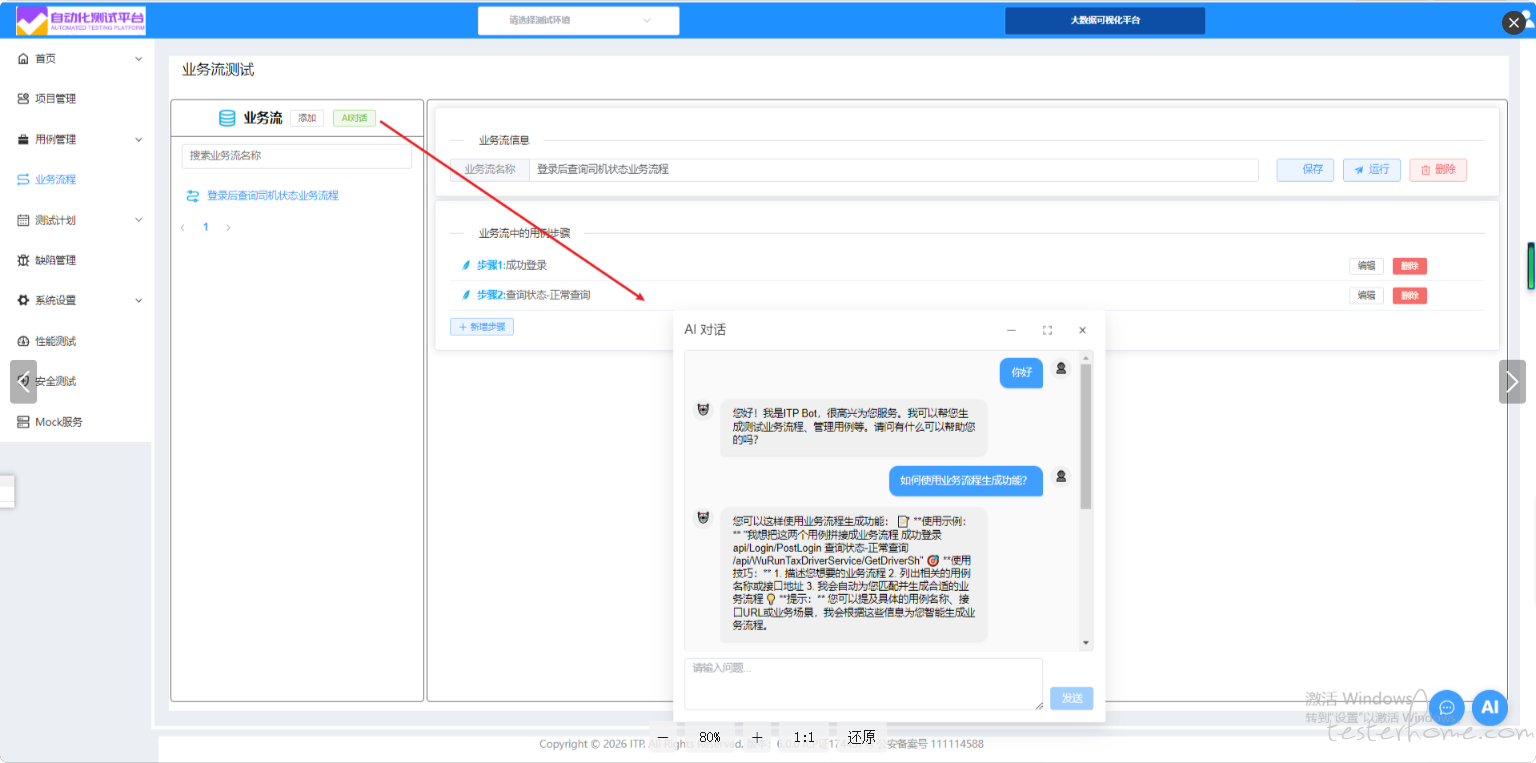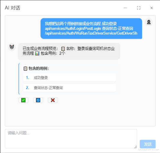 3. 验证返回数据完整性 流程名称:用户登录后信息查询业务流" 全程对话交互,就像和真人工程师沟通一样自然!