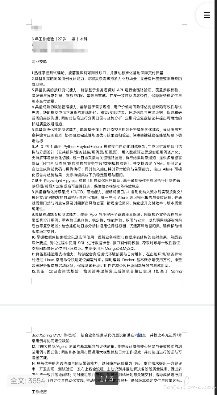 这简历也太长了吧,第一步先精简字数吧,第二步找到要突出的重点,第三步针对目标岗位定制化修改,不然看着就像是用 AI 水字数的产物。