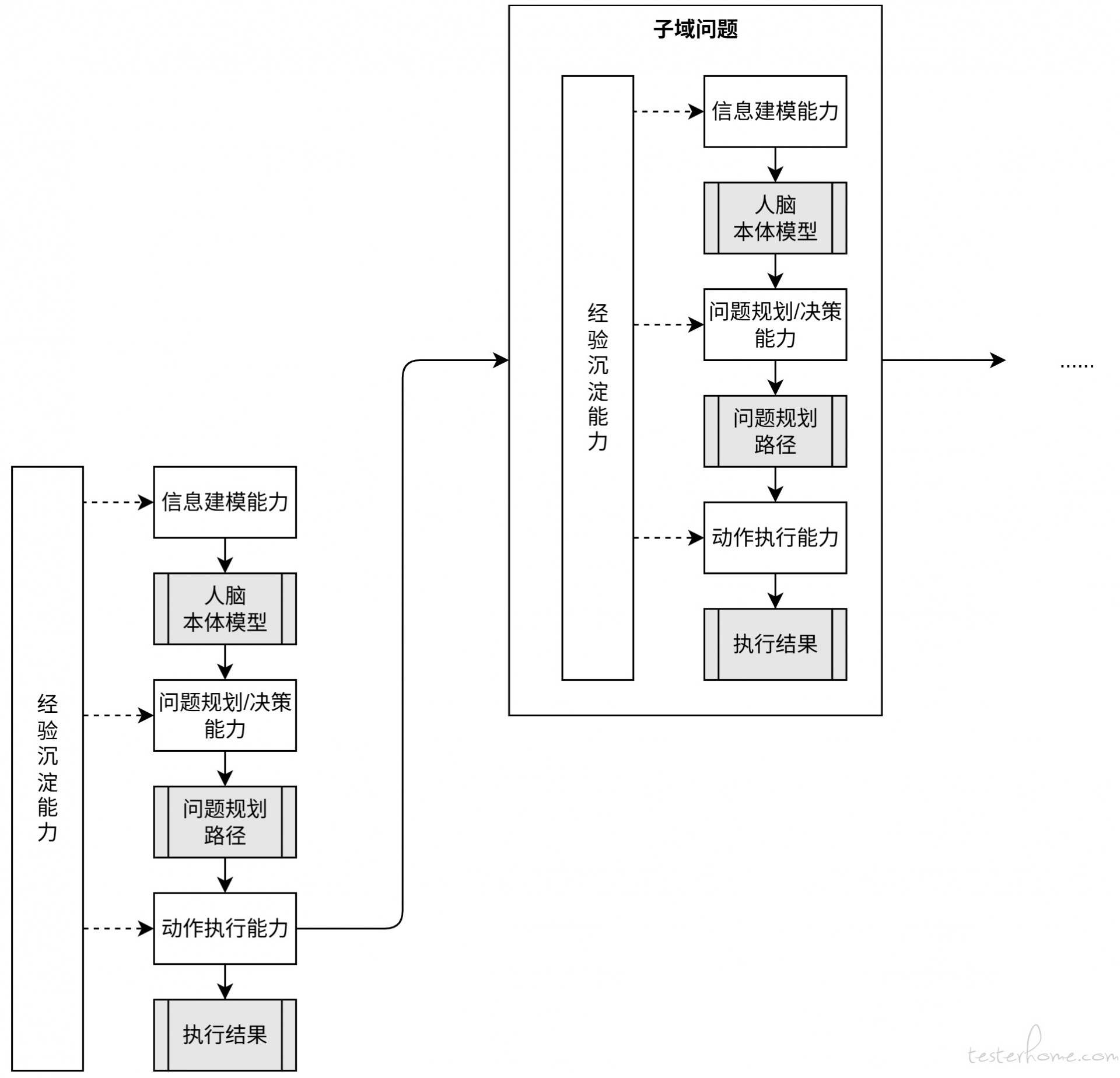 无论是信息建模能力、问题规划与决策能力,还是动作执行能力,它们都依赖于一个共同的基石——经验。经验是基础构件,是真正可以被复用、被传承的核心资源。经验沉淀可以发生在不同层面,例如行业级、项目级、领域级或公司级。无论是 “如何编写测试用例”、“如何评审产品需求”,还是 “如何进行性能测试”,这些都是测试领域中具有价值的经验沉淀。