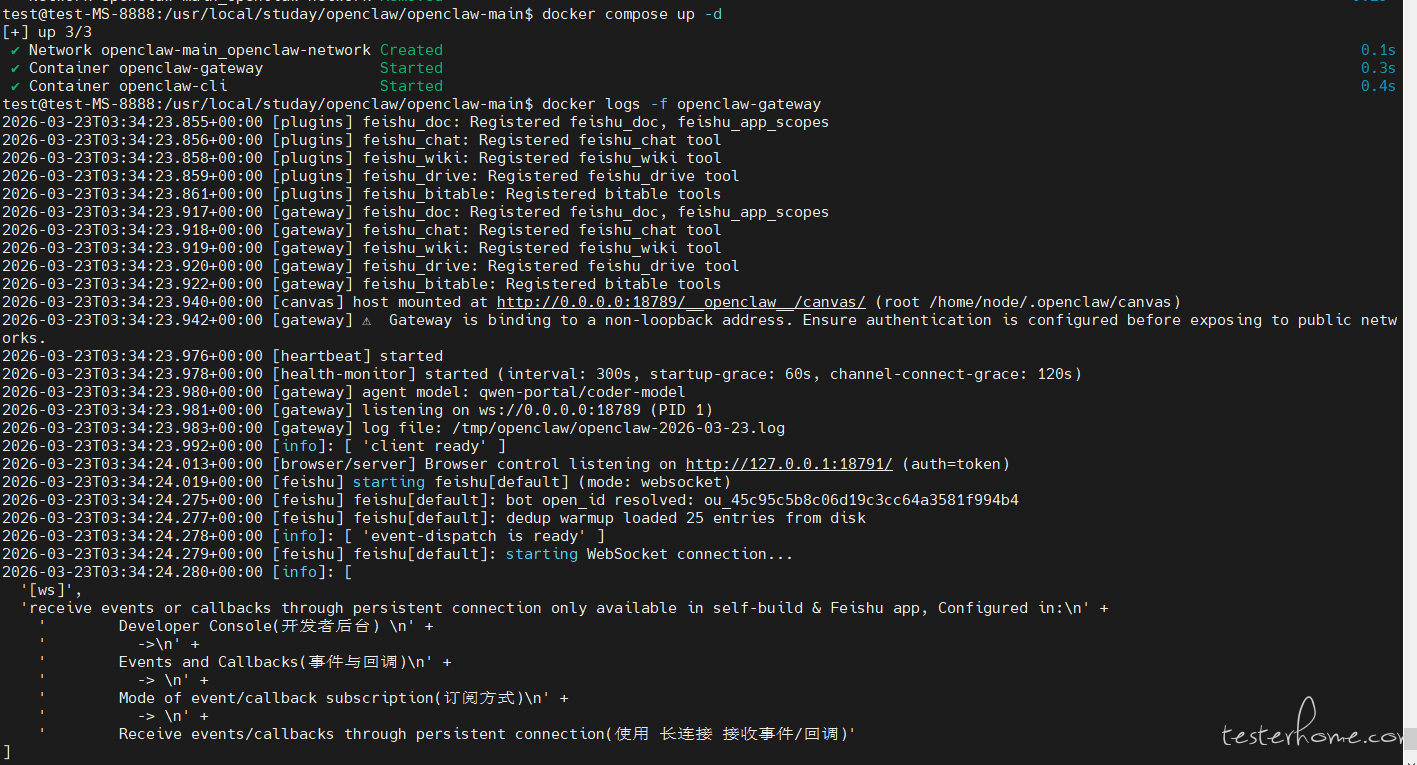 docker(openclaw-cli+openclaw-gateway)+ ollama + 飞书 (略)