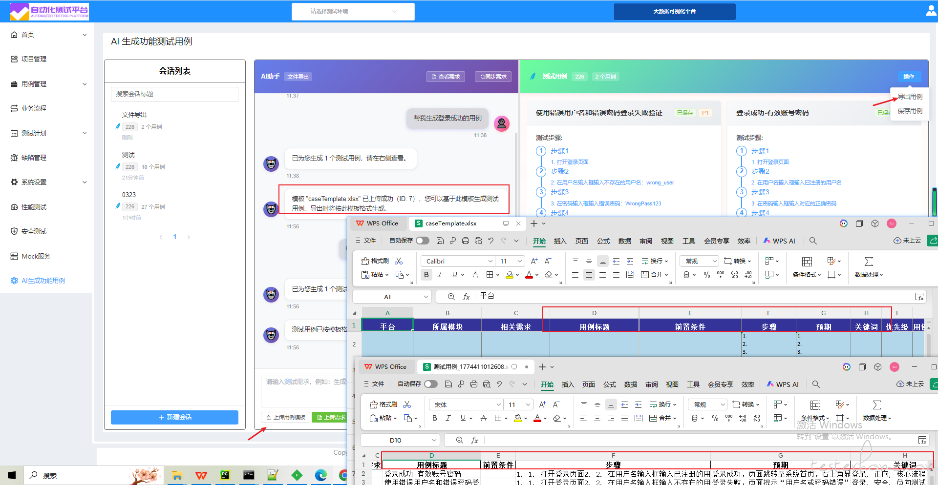 注:我们可以同步禅道需求,上传用例模板,生成的用例按照模板格式导出 ,可以直接上传用例管理系统
