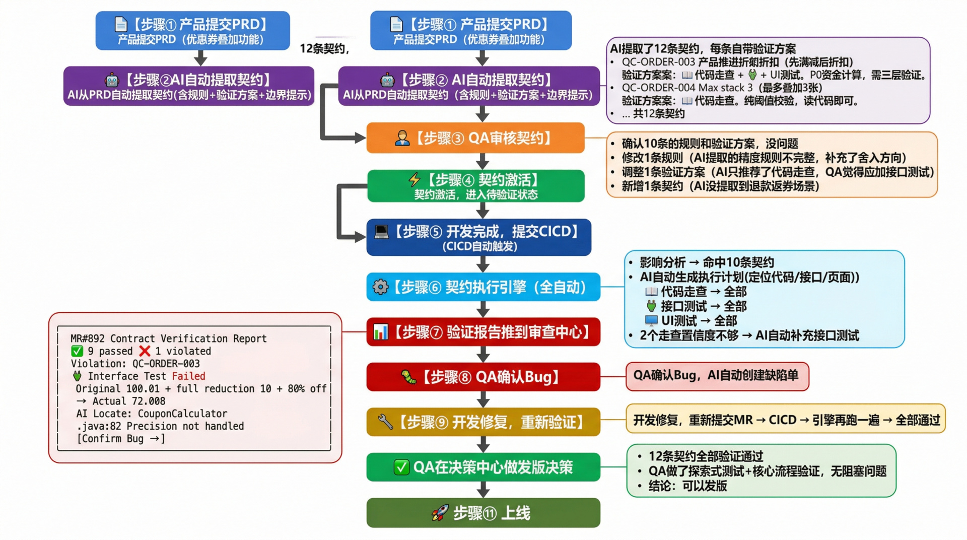 · AI生成契约时就包含最佳验证方案的推荐,QA只需审核确认