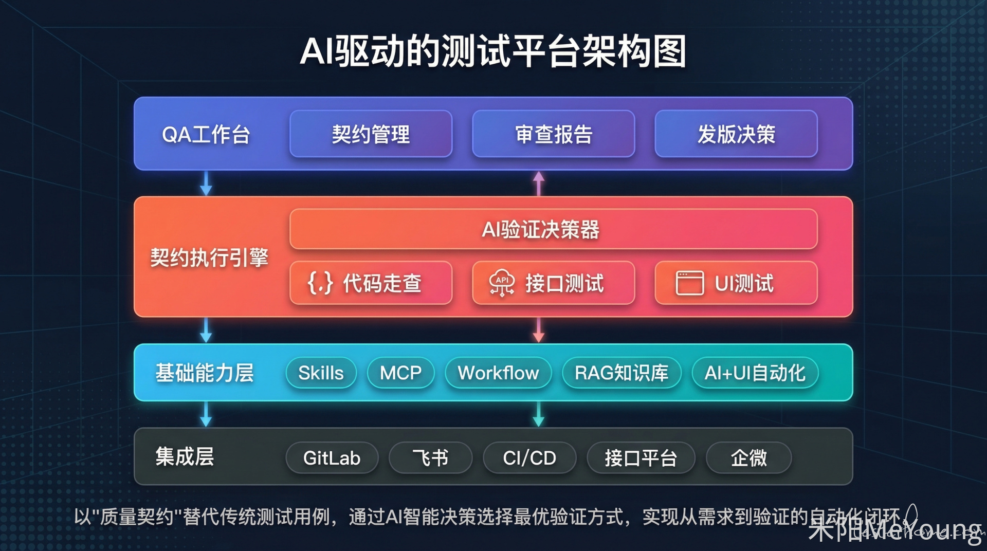 用户层 = AI生成、QA审核的:业务规则 + 验证方案(📖🔌🖥)+ 边界提示